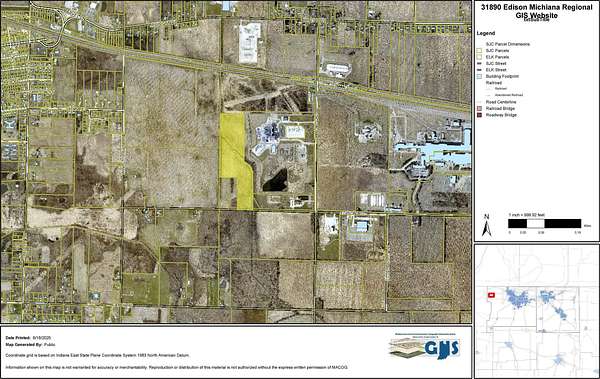 Est $31,184/mo*PRIME PROPERTY* A rare opportunity within IEC (Indiana Enterprise Center) and Master Planned Industrial Park in Olive Township, New Carlisle. Currently zoned AG. Surrounding properties are Zoned Commercial or Industrial and all within the Commericial District. Neighboring businesses are St. Joseph Energy Center, Cleveland Cliffs, Amazon Data Center and the GM Plant. This Central Midwest location is Accessibile to Interstates, Fiber Optic Internet, and adjacent to Water and Sewer Utilities infrastructure. This could be your last potential option to own a site in this established growing area with endless possibilites. Broker owned.