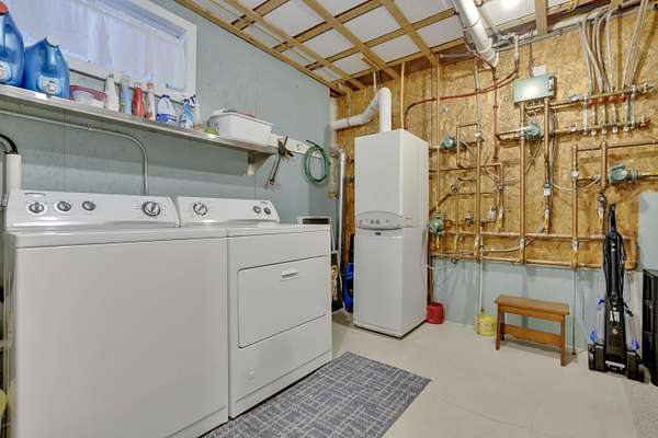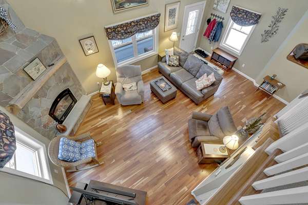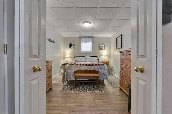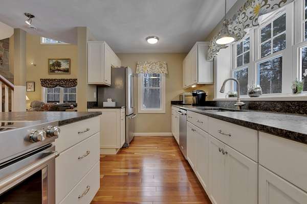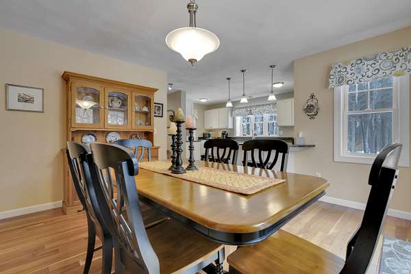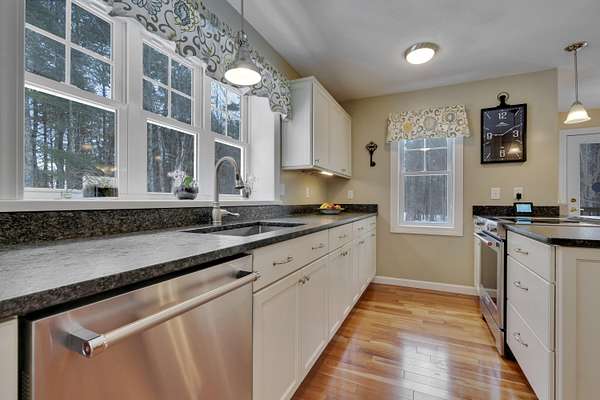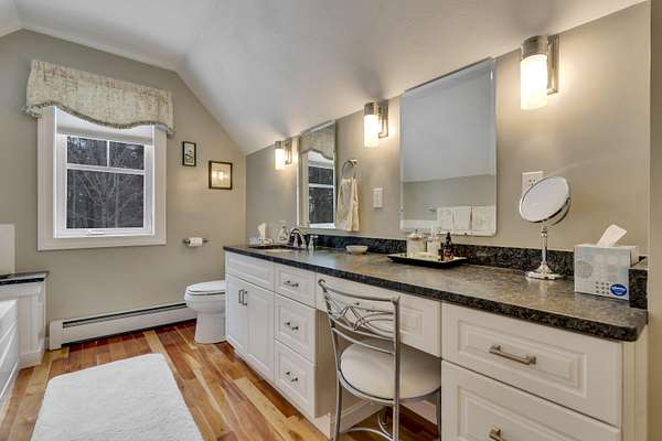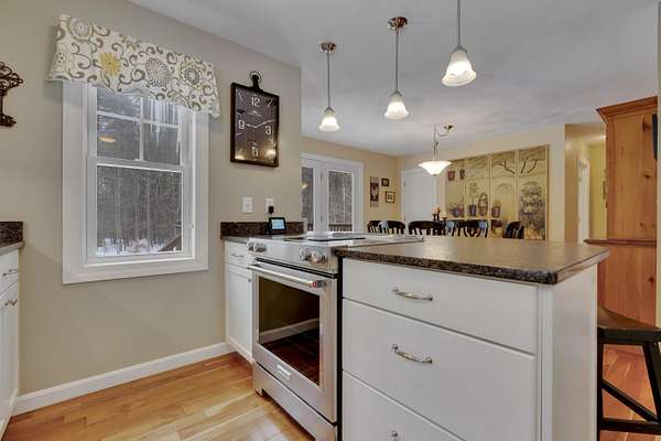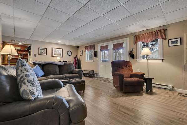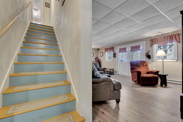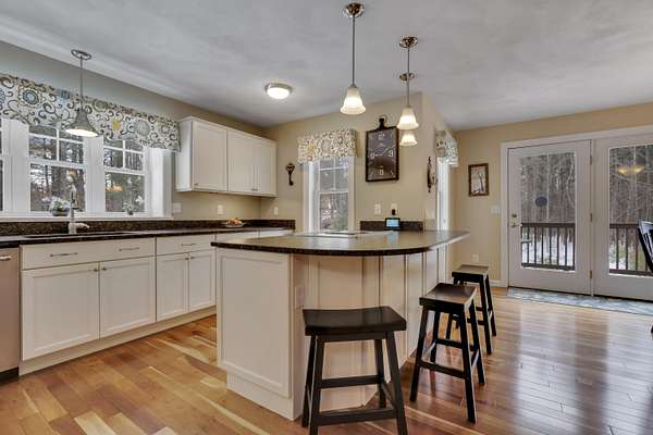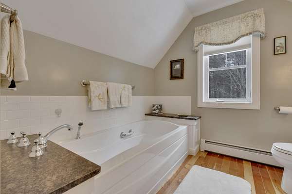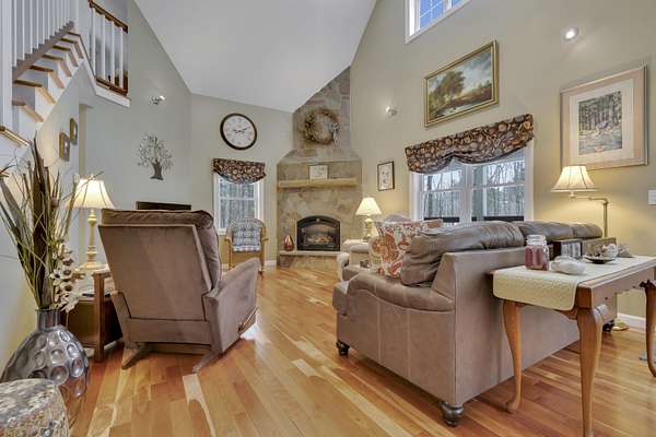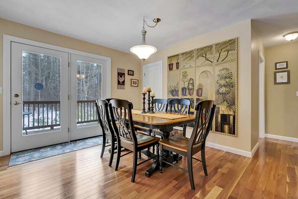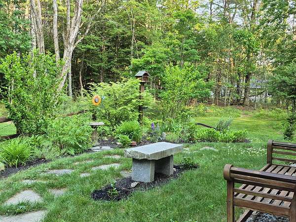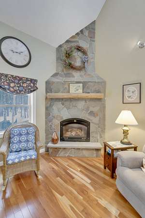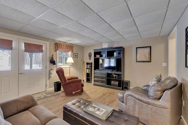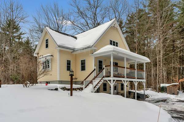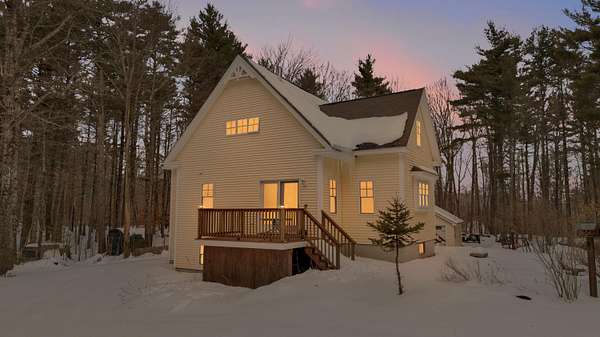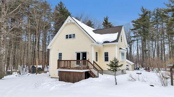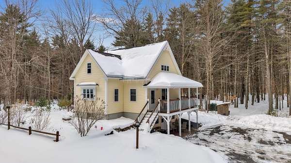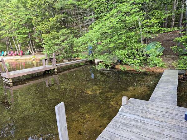 OPEN HOUSE SATURDAY FEB 21ST FROM 11:00 AM TO 1:00 PM- Uniquely Designed Home with Shared Waterfront Beach on Balch Lake - Acton, ME! Tucked back from the road on a peaceful 5-acre open and wooded lot, this beautifully crafted home is surrounded by thoughtfully maintained landscaping that enhances its privacy and natural setting. Enjoy shared access to over 800' of shoreline on Balch Lake, including a A 1/2 interest in a dock-perfect for keeping your boat in the water all season long. The home welcomes you with a dramatic cathedral-ceiling in the living room featuring a stunning gas fireplace, creating a warm and inviting gathering space. The kitchen with breakfast bar flows into the dining area, which opens directly to a rear deck ideal for entertaining or relaxing outdoors. The first floor also includes a bedroom and full bath, offering convenient one-level living options. Upstairs, you'll find a versatile loft area, perfect for a home office, reading nook, or hangout space. The primary bedroom suite on this level, features a soaking tub and large vanity, creating a private retreat. In the walk-out basement you'll find exceptional living space with an additional bedroom, large family room, and a bar with kitchenette-great for keeping all those beverages cold. A full bath, laundry/utility room and storage room complete the lower level, making it ideal for guests or extended living. Additional highlights include the covered front porch, forced hot water and radiant heat throughout, an oversized one-car heated garage and shed. Whether you're looking for a year-round residence or a serene getaway, this one-of-a-kind property delivers comfort, character, and the best of lake living. A rare opportunity to enjoy privacy, space, and a lake area lifestyle in one exceptional property.