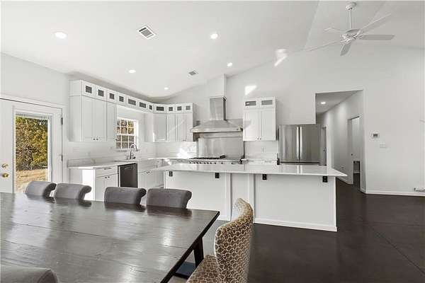 Welcome to this stunning new-construction modern farmhouse situated on a spacious setting with beautiful views. This 3 bed, 2 bath home offers a bright, open-concept layout with soaring ceilings, polished concrete floors, and a custom chef's kitchen featuring stainless appliances, gas range, oversized island, and expansive cabinetry. Every door is 36'' wide, offering comfortable accessibility throughout. Enjoy a large covered front porch and a spacious shop/garage that is perfect for hobbies and storage. Peaceful, low-maintenance living with thoughtful design and quality finishes, move in ready and built to last! This home captures the warmth of country living with the luxury touches you have been looking for with views of the sunset every night!