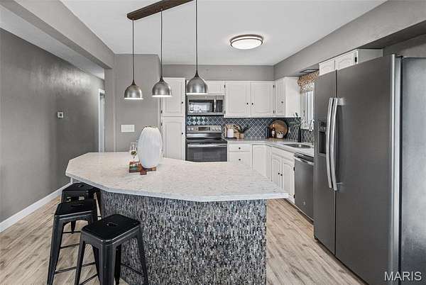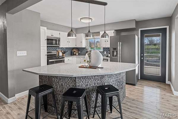 Rare opportunity to own private acreage right in the heart of Glen Carbon! This beautiful all-brick 4-bedroom home sits on approximately 2 secluded acres tucked into a peaceful, wooded setting while still being just minutes from everything town has to offer. Surrounded by mature trees and natural beauty, the property offers a rare sense of privacy and space that is hard to find within town limits. Inside, the home features an open floor plan with large windows that fill the space with natural light and provide beautiful views of the surrounding woods and evening sunsets. The updated kitchen features quartz countertops, a custom backsplash, and stainless steel appliances, and flows perfectly into the main living areas, making it great for everyday living or entertaining guests. Just off the kitchen, the covered patio creates the perfect outdoor living space to relax or host gatherings while overlooking the low-maintenance saltwater pool and private backyard. The lower level offers additional living space with a cozy family room, a large bedroom with a walk-in closet, a bathroom, and a laundry room - ideal for guests, extended living, or a private retreat. Additional features include an oversized 2-car garage with built-in storage shelves and a workshop bench. Located on a quiet dead-end street with direct access to the bike trail, this property combines privacy, convenience, and outdoor enjoyment all in one. Whether you're relaxing by the pool, enjoying the peaceful wooded surroundings, or hopping on the nearby trails, this home offers a truly special lifestyle opportunity in Glen Carbon.