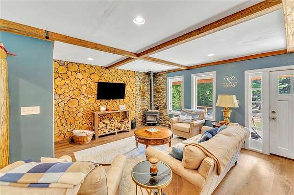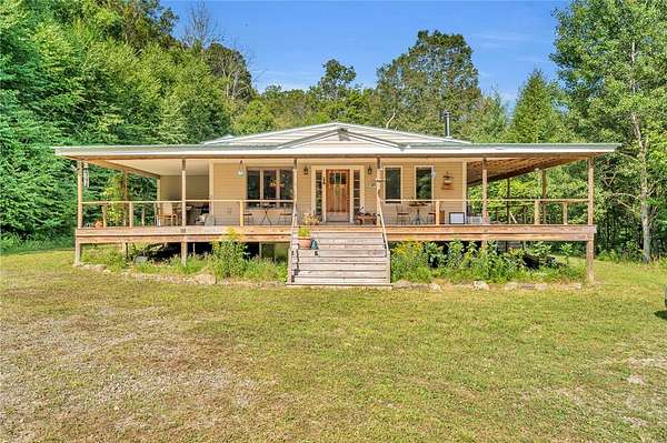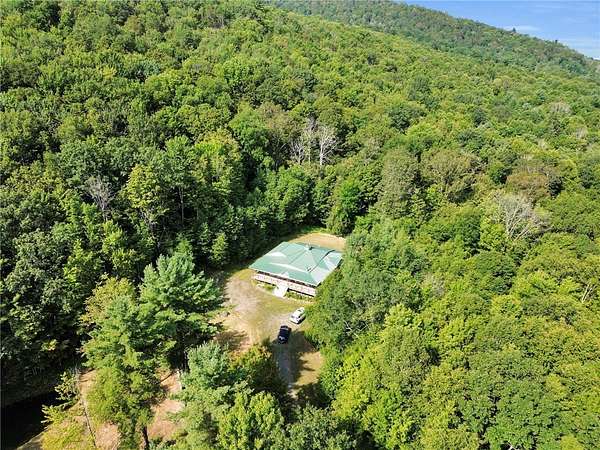 Tucked away on 47 private acres yet only minutes from popular shopping, dining, and everyday conveniences, this 3-bedroom, 2-bath ranch offers the perfect blend of seclusion and accessibility. A long private drive opens to wide skies and wooded surroundings, creating a peaceful retreat just outside of the city of Oneonta. Inside, the single-level ranch layout is designed for comfort with a warm and welcoming living area, a well-equipped kitchen with meticulous finishing, and spacious bedrooms and bathrooms. Updated stainless steel appliances, hand-crafted counter tops, and recessed lighting give a luxurious feel. A full 1800 square foot basement also awaits to provide extra ample living space. Outside, enjoy a wraparound covered porch, a fire pit area, and a pond to entertain guests. The property also boasts a large pole barn for storage with electric service. The expansive acreage offers endless opportunities-hiking trails, hunting land, hobby farming, or simply enjoying the quiet beauty of nature. Whether you're seeking a primary residence, a second property for weekend getaways, or an income-producing short-term rental, this property's rare combination of privacy, acreage, and proximity to town make it a truly unique find.