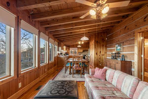 Tucked away on 17 private acres with sweeping mountain and valley views, 319 Lookout Dr. offers a rare opportunity for those seeking seclusion, space, and built-in income potential. The main cabin spans just under 2,800 square feet and features four bedrooms, two full baths, and two half baths, creating a comfortable and functional layout for full-time living or a mountain getaway. A spacious covered deck invites you to take in the views, while a detached work garage and separate storage shed add flexibility. With much of the acreage extending dramatically over the cliff, the setting delivers an exceptional sense of privacy and a retreat-like atmosphere.