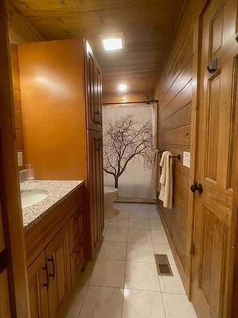 - Breakfast Bar, Cathedral/Vaulted Ceiling, Ceiling Fan(s), Ceramic Tile Bath, Kitchen Island, Kitchen/Dining Room, Kitchen/FR Combo, Living/Dining Room, Main Level Living, New Kitchen, Open Floorplan, Primary On Main Level, Primary W/Ensuite