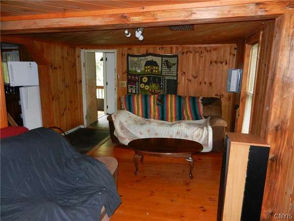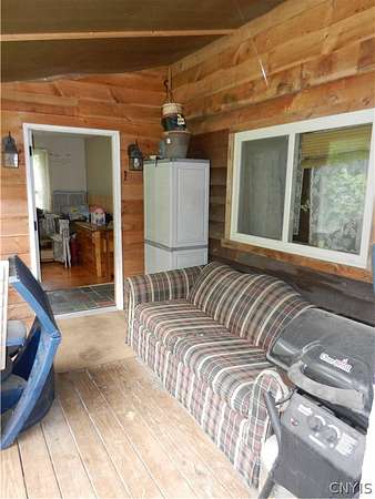 Enjoy peace and privacy on this tranquil 2-acre (2 Lots) lot bordering the Adirondack Park with boundless outdoor activities. Perfect for year-round living or a cozy seasonal escape, this property offers direct access to snowmobile trails and nearby mountain biking trails, close state land, and picturesque fishing streams. The spacious camp features beautiful tongue-and-groove accents, wide pine floors, an open kitchen with island, a dining area, and a generous living room. Upstairs you'll find two comfortable bedrooms. An enclosed front porch invites you to relax and take in the scenery for three seasons, while ample shed space provides storage for all your recreational gear. A rare opportunity for outdoor enthusiasts!