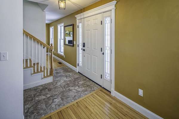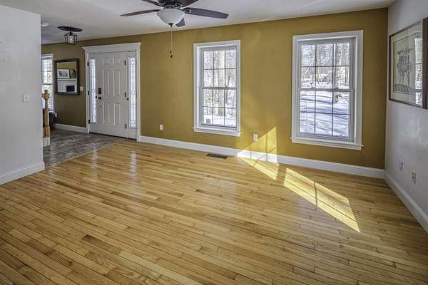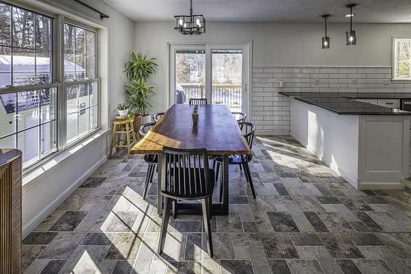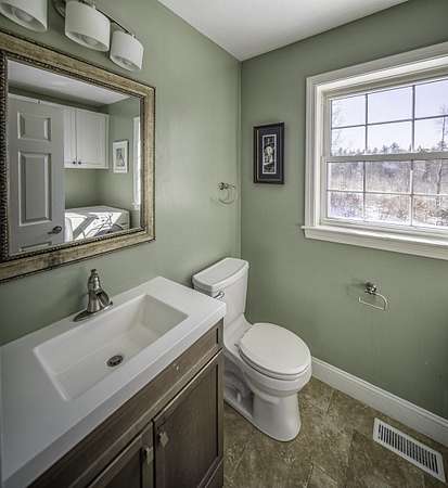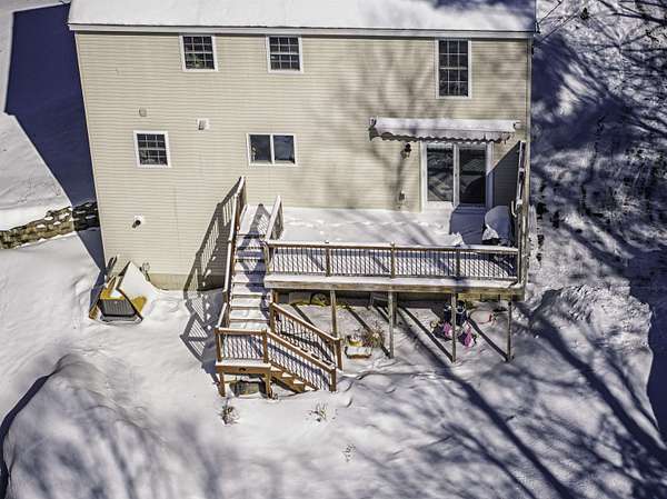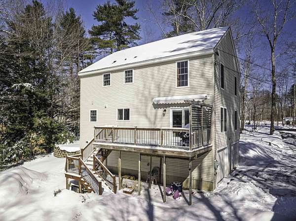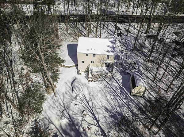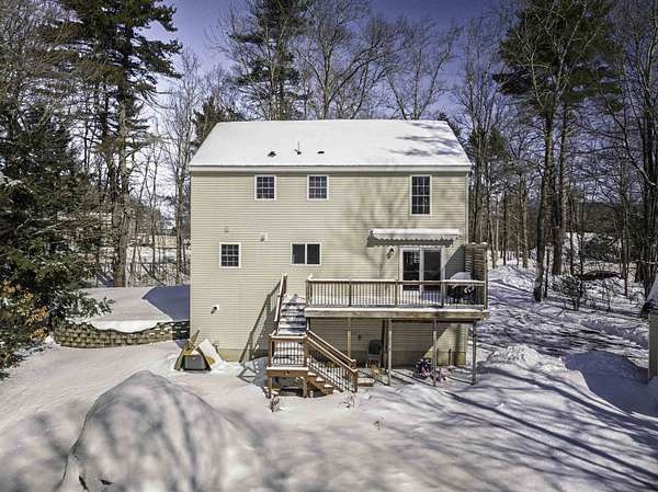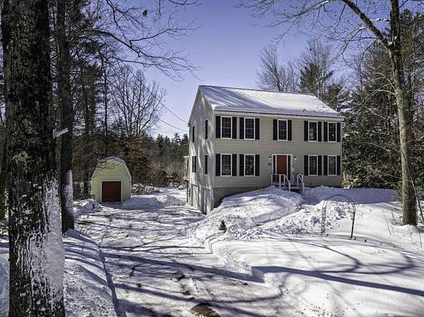 Open House 3/7 11-12:30. Nestled on a serene 8.86-acre parcel in desirable Barrington, this beautifully maintained colonial offers the perfect blend of space, privacy, and New England charm. Set well back from the road and surrounded by mature landscaping, this home provides a peaceful retreat while still being conveniently close to major routes including Routes 4, 9, and 125 — just about 1.5 hours from Boston, Portland, and the White Mountains, and roughly 30 minutes from Concord and the Seacoast. Inside, you’ll find a thoughtful floor plan designed for both everyday living and entertaining. The front-to-back living room features a warm gas fireplace, while the adjacent formal dining room flows into the open, light-filled kitchen — completely remodeled in 2021 with designer finishes, new appliances, tile flooring, and a convenient pot filler over the stove. Step through the dining area to your generous 20 x 12 deck — a private outdoor haven perfect for morning coffee, summer barbecues, or simply soaking in the tranquil wooded views. Backyard has a large firepit and almost 9 acres to explore! Upstairs, the spacious primary suite is a standout featuring a large walk-in closet with built-ins and an updated en-suite bath, offering a private and relaxing space to unwind. Three additional bedrooms and a bathroom completes the upper level. Practical upgrades and thoughtful details abound, including a newer roof with transferable warranty, new central air compressor, on-demand hot water heater, water softening and filtration system, and new front porch. A large shed with extra storage space adds functional versatility for all your outdoor gear and projects. With classic design, modern updates, and expansive grounds, this move-in-ready property is a true Barrington gem — spacious enough for family gatherings, quiet enough for tranquil living. Current VA loan is assumable for qualified buyers.
