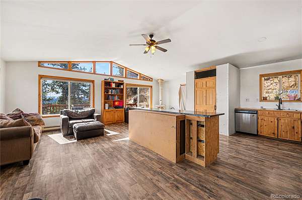 Escape to the heart of the Red Feather Highlands and discover a mountain home that perfectly balances tranquility with true Colorado lifestyle. This residence offers the best of mountain life, defined by peaceful surroundings and sweeping, unobstructed views of the Mummy Range. The property itself is a natural playground, featuring impressive, climbable rock formations right in your own backyard. The versatile two-story layout is ideal for multi-generational living or a guest-ready retreat; the lower level includes a functional kitchenette, two bedrooms, a 3/4 bath, and a laundry area. You will also find a spacious workshop on this level with a dedicated door to the yard—perfect for projects, gear storage, or a home studio. The upper floor serves as the main gathering space, featuring soaring vaulted ceilings and an open-concept kitchen and living area. A cozy wood-burning stove anchors the room, while a large door leads out to the expansive deck—the ultimate spot to take in those tranquil mountain vistas. Two additional bedrooms and a full bathroom complete the upper level. Thoughtfully equipped for the high-altitude climate, the home includes a dedicated heater for the waterline running from the well to the house; for easy winter maintenance, the heater plug is located in the southeast bedroom on the lower level. Enjoy the true sounds of the wilderness with the nearby wolf sanctuary’s evening howls. Whether you’re looking for a peaceful full-time residence or a weekend getaway where you can add your own personal updates over time, this Red Feather Lakes home is a rare find.