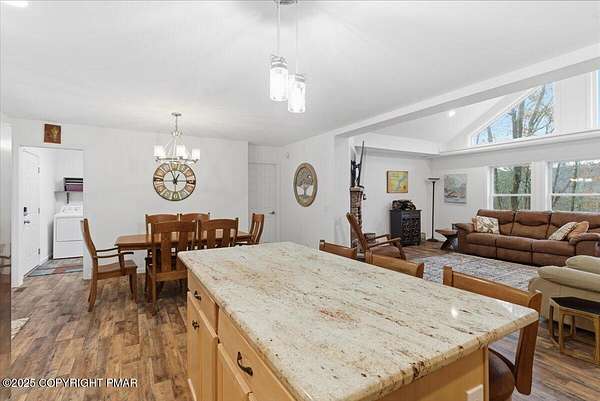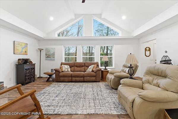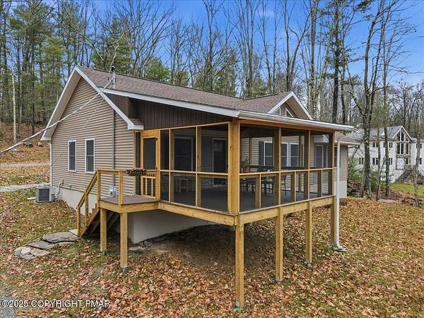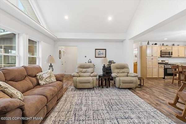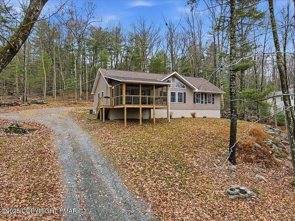Welcome to this stunning 2021-built, ORIGINAL OWNER, 3BR/3BA home with serene SECOND TIER VIEWS of Tinkwig Lake. Step inside the living room with a VAULTED CEILING and CUSTOM WINDOWS that bring in the NATURAL LIGHT. A STONE FIREPLACE anchors the space, creating a warm and inviting atmosphere for gatherings. The OPEN FLOOR PLAN seamlessly connects the living, dining, and kitchen areas-ideal for entertaining. The kitchen features GRANITE COUNTERTOPS, STAINLESS STEEL APPLIANCES, GAS STOVE, and CENTER ISLAND - perfect for the home chef. Retreat to the primary suite, complete with a TRAY CEILING, EN SUITE BATHROOM, WALK-IN CLOSET and plenty of space to unwind. Enjoy lake breezes year-round from the NEW SPACIOUS SCREENED IN PORCH overlooking the water-a peaceful spot for morning coffee or evening relaxation. Additional features include TWO DETACHED GARAGES/SHEDS providing ample storage for vehicles, tools, or lake toys, and an unfinished basement with a pool table, ready for your personal finishing touches. This property includes the lot to the left combining for 2 luscious ACRES. This home is perfect for year round living, a weekend getaway or an investment property. Lake Wallenpaupack is only minutes away and SHORT TERM RENTALS are permitted. Explore the possibilities and make your appointment today!