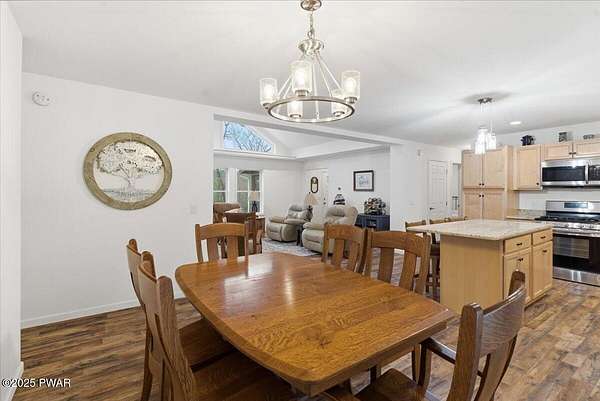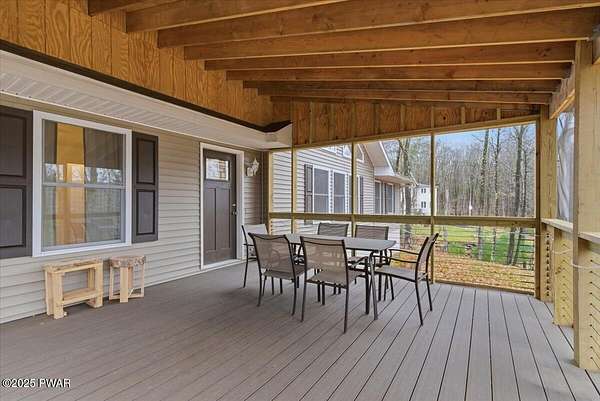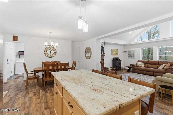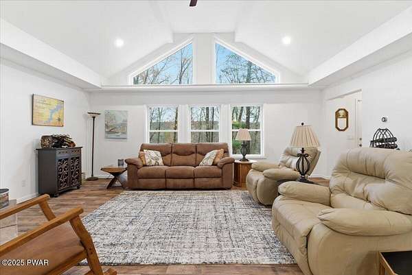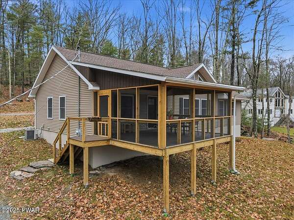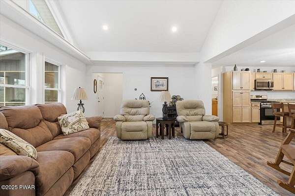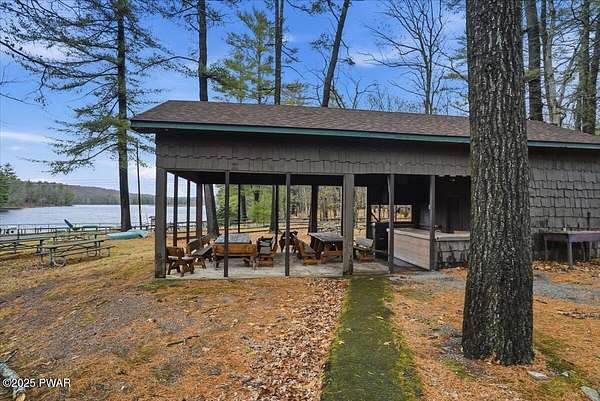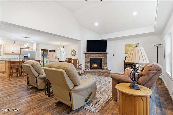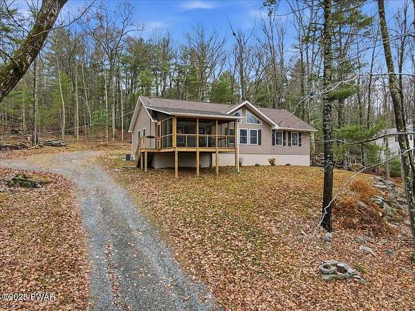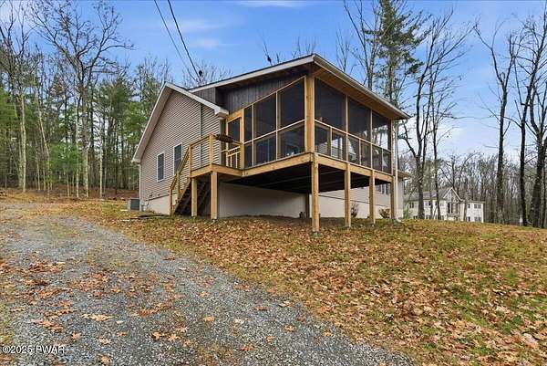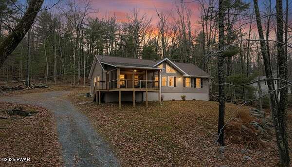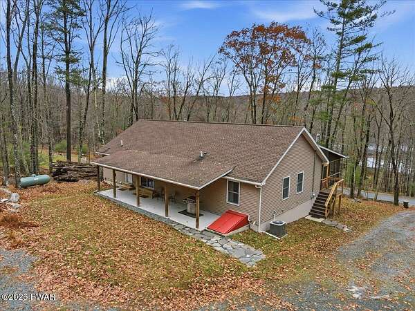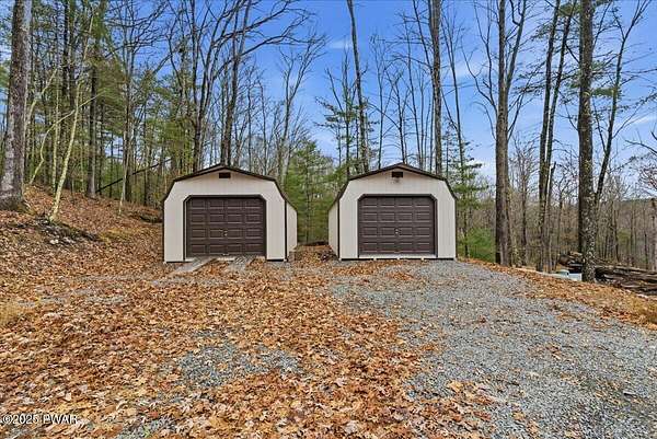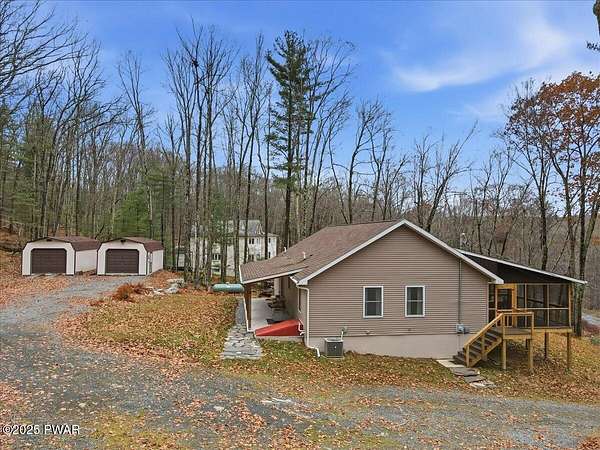 Welcome to this stunning 2021-built, ORIGINAL OWNER, 3BR/3BA home with serene SECOND TIER VIEWS of Tinkwig Lake. Step inside the living room with a VAULTED CEILING and CUSTOM WINDOWS that bring in the NATURAL LIGHT. A STONE FIREPLACE anchors the space, creating a warm and inviting atmosphere for gatherings.The OPEN FLOOR PLAN seamlessly connects the living, dining, and kitchen areas--ideal for entertaining. The kitchen features GRANITE COUNTERTOPS, STAINLESS STEEL APPLIANCES, GAS STOVE, and CENTER ISLAND - perfect for the home chef.Retreat to the primary suite, complete with a TRAY CEILING, EN SUITE BATHROOM, WALK-IN CLOSET and plenty of space to unwind.Enjoy lake breezes year-round from the NEW SPACIOUS SCREENED IN PORCH overlooking the water--a peaceful spot for morning coffee or evening relaxation.Additional features include TWO DETACHED GARAGES/SHEDS providing ample storage for vehicles, tools, or lake toys, and an unfinished basement with a pool table, ready for your personal finishing touches.This property includes the lot to the left combining for 2 luscious ACRES. This home is perfect for year round living, a weekend getaway or an investment property. Lake Wallenpaupack is only minutes away and SHORT TERM RENTALS are permitted.Explore the possibilities and make your appointment today!
