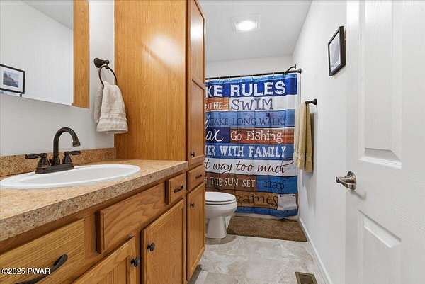 From Rt. 6 in Hawley, go Right onto Rt. 590 at Light near Settler's Inn. Stay on Rt. 590 for about 5 miles until you see the Tinkwig Sign on your Left. Turn Left onto Clubhouse Drive go straight staying on Clubhouse Drive and go over the narrow bridge between pool and lake. Take first Right onto Tinkwig Drive. Go 1 mile and house is on your left.