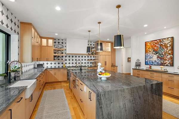 - Built-In Features, Built-In Wine Cooler, Central Vacuum, Chandelier, Decorative Lighting, Double Vanity, Eat-In Kitchen, Granite Counters, Kitchen Island, Natural Woodwork, Open Floorplan, Smart Home System, Sound System Wiring, Walk-In Closet(s), Wet Bar, Wired For Data