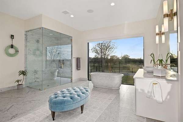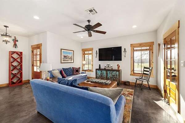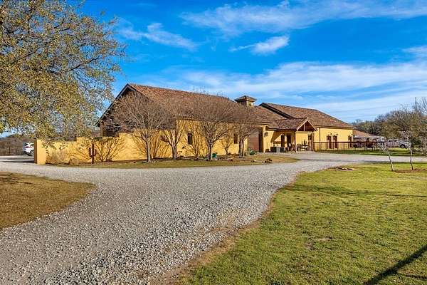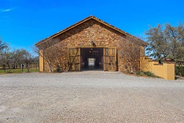 Welcome to Lazy H Ranch, A Luxury Equestrian Property on 50 Acres in Fort Worth, only 15 minutes from Will Rogers Coliseum. There is no other way to describe this property other than AMAZING, ONE OF A KIND, LUXURY EQUESTRIAN PROPERTY. Every detail of this property was meticulously thought out and built with superior craftsmanship, from the main house of 6500 square feet to the rustic custom built 8 stall barn that boasts large foaling stalls and 30 foot runs for each stall. The topography of this property offers privacy, amazing views, and a pond that flows off into a ravine creating a waterfall. The main home is modern contemporary with stucco exterior and a slate roof. Featuring four bedrooms, media room, office-exercise room, four full baths, one powder bath and a half bath for the pool area. Enjoy the oversized gourmet kitchen with an 11x6 solid piece granite countertop, waterfall edges and gourmet appliances. The kitchen and the bar area both have windows that open to serve the outside pool area. Retreat to the private primary bedroom with 10 foot ceilings, large windows, a walk out door to the covered patio and pool area, elegant oversized bathroom with a free standing marble tub, glass steam shower and floor to ceiling windows. The primary bedroom closet, 18x23, also serves as a safe room, incapsulated fully with concrete and fully designed with a California closet system. Outdoors relax in the custom built heated pool, surrounded with a large covered heated patio, hot tub, and an infrared sauna. This home is equipped with a geothermal heating system and a commercial generator for power. Property also has two Casita's for guests or family and two apartments. The equestrian facility along with the 8 stalls has tack storage, vet room, feed room, bathroom, RV storage, and a shop area. Theres also 2 covered equipment and hay sheds, 5 RV hookups, 8 traps with loafing sheds, riding arena, fuel tanks and multiple propane tanks that run the two commercial generators.