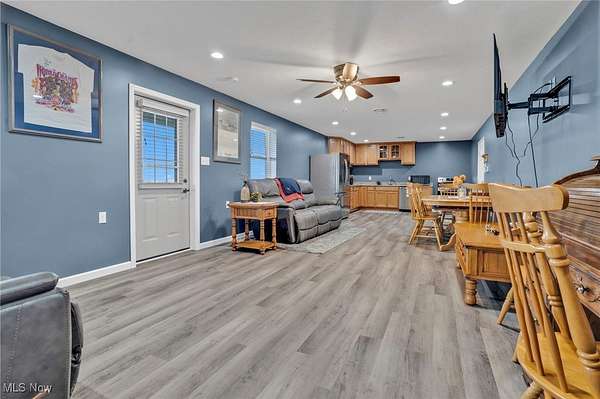 Discover the perfect blend of modern comfort and country living with this custom-built 2022 barndominium situated on just under 10 acres, only 5 minutes from town. Designed for easy one-floor living, this home features brand new appliances and high-end finishes throughout. The property offers flat, level land with a gentle roll at the back. Ideal for a variety of uses or simply enjoying the open space. No stairs make accessibility a breeze. The massive 26x60 attached garage is fully heated, equipped with water, and offers ample room for a motorhome, boat, storage, and more. You'll also find a 12x20 detached garage for added convenience. This unique property is a rare find! Move-in ready and built to impress.