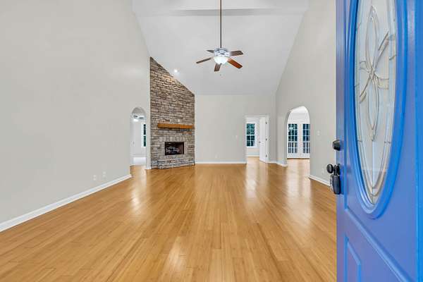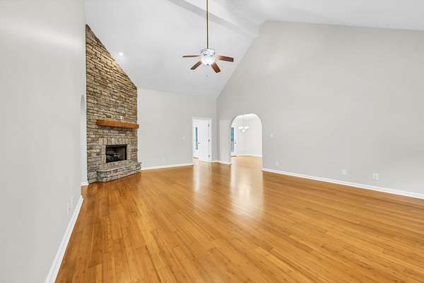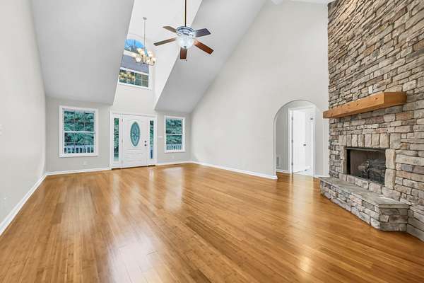 Recent Appraisal on file! Beautifully Updated 4 Bedroom Home with Spacious Floor Plan on 1.52 Acres! This stunning home features refinished bamboo flooring, brand new carpet, and fresh interior paint throughout. The kitchen boasts stainless steel appliances including a brand-new dishwasher and flows seamlessly into the bright and versatile sunroom, perfect for a home office, playroom, or relaxing retreat. The living room impresses with soaring ceilings and a dramatic floor-to-ceiling rock fireplace. The large primary suite includes a walk-in closet, double vanities, and a luxurious whirlpool tub for ultimate relaxation. Upstairs, a huge bonus room over the two-car garage offers endless possibilities, a game room, gym, or guest space. Step outside to a newly built deck, ideal for entertaining, all set on a private 1.52-acre lot. Recent appraisal on file, don't miss this move-in ready gem!