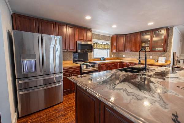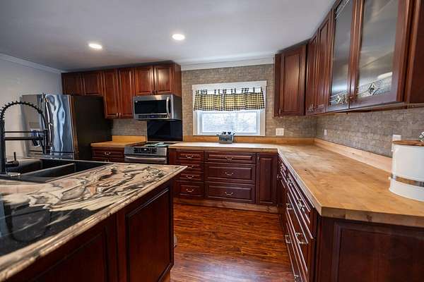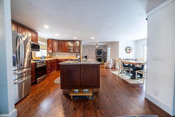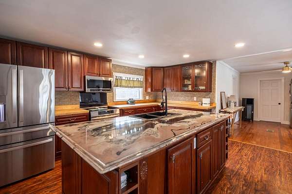 Welcome to your dream home! This beautifully remodeled 3-4 bedroom, 2-bathroom home blends comfort, functionality, and modern luxury, all set on a peaceful 2.49-acre lot. Thoughtfully updated while preserving its original character, this home offers both charm and versatility for today's lifestyle. Step inside to an inviting open-concept layout featuring a spacious living room, kitchen, and dining area designed for seamless everyday living and entertaining. The kitchen showcases real cherry wood cabinetry, high-end appliances, a rustic pantry with barn doors, and refined finishes that make it both stylish and practical. The main level includes a bedroom with a private en-suite bathroom, offering flexible living arrangements ideal for guests, multi-generational living, or a private office space. Upstairs, you'll find three additional bedrooms, including a generously sized primary bedroom with excellent potential to either add a third bathroom or create an expansive walk-in closet tailored to your needs. Outside, enjoy your own private oasis featuring a 27-foot above-ground pool complete with a 12x12 deck -- perfect for relaxing or hosting summer gatherings. Additional highlights include: * Oversized garage with abundant storage or workshop space, large enough to accommodate a vehicle lift * Three-stall barn ideal for hobby farming, storage, or workshop use * Low property taxes * Beautiful perennial flower gardens * A quiet rural setting without sacrificing convenience, located just 10-15 minutes from both Waterville and Augusta. Built in 1850, this property offers a rare combination of modern upgrades and timeless country charm -- a unique opportunity to own a piece of history while enjoying today's comforts. Schedule your private showing today! More photos coming soon. Barn can be removed from property if wished.
