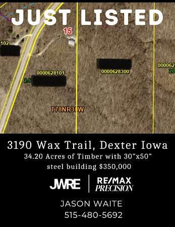 Welcome to 34.20 acres of timber in Guthrie County. Land is heavily timbered with a 30' x 50' steel building on it. Building is in pretty tough shape but the potential is all there to make this property a slice of heaven. All Utilities are onsite to the Steel building. Zena Water, Propane tank and septic system all on site. Sold AS-IS. All information obtained from seller and public records.