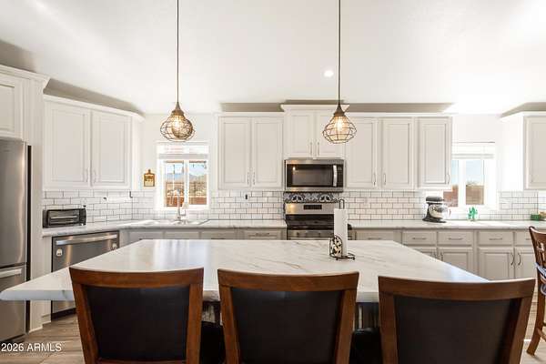 - 3/4 Bath Master Bedroom, Breakfast Bar, Eat-In Kitchen, Kitchen Island, Laminate Counters, No Interior Steps, Pantry, Vaulted Ceiling(s), Walk-In Pantry