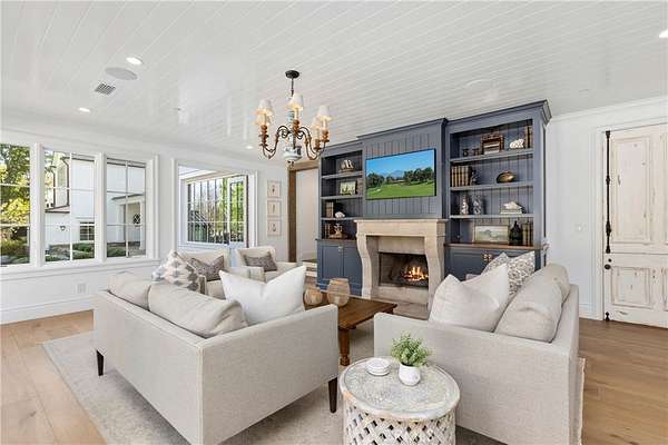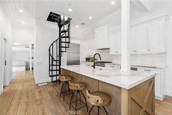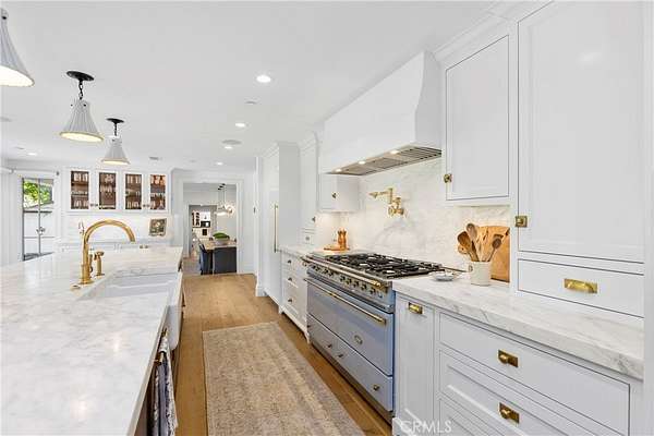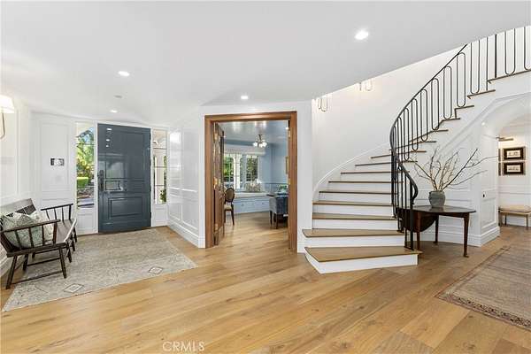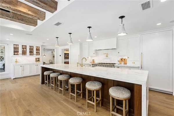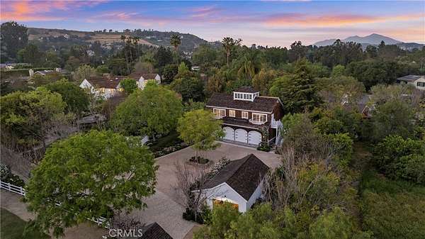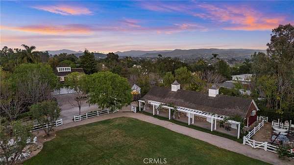 Set across 2.2 acres of serene, storybook grounds, this truly one-of-a-kind estate offers an exceptional blend of tranquility, craftsmanship, luxury, and timeless character. Beneath a canopy of sprawling pepper trees, the property unfolds like a private retreat with beautifully laid stone surrounding a graceful fountain, boulders are thoughtfully placed, & a peaceful pond. A wishing well adds charm, while a rare 100+ year-old theater door serves as an architectural centerpiece. Designed for both quiet living & grand entertaining, this estate invites you to create a lasting legacy for generations to come. The main residence, completed in 2024 & spanning approximately 6,885 square feet, has Wide-plank Monarch oak floors, custom cabinetry with Armac Martin hardware, and Waterworks fixtures define the interiors. A fully integrated Lutron HomeWorks system controls lighting, shades, audio, security, and pool features, complemented by whole-home water filtration and five HVAC zones. The kitchen features a LaCanche 55” range, Calacatta marble counters with integrated sinks, dual Wolf dishwashers, Wolf steam oven, Sub-Zero refrigeration, & a Scotsman ice maker. Additional spaces include a game room, a dog washing area, and a mudroom. The 3,180-square-foot carriage house includes a 1,180-square-foot guest residence with Thermador appliances, custom cabinetry, Sonos sound, & Lutron lighting. The lower level offers a four-car garage, theater, sauna, bathroom, kitchenette, and laundry. Additional structures include a studio, a private office with new HVAC and designer finishes; and an 800-square-foot barn featuring a catering kitchen with restored Viking range, Sub-Zero refrigeration, Bosch dishwasher, marble island, and a gym. The grounds have been fully replanted with new irrigation and lighting. A pool and separate jacuzzi have been updated, complemented by a pool house with HVAC. A private pickleball court adds recreation, while a chicken coop enhances the estate’s character. The BBQ area features Lynx appliances, refrigeration, and an ice machine. The koi pond and fountain have been upgraded, and the property includes fiber connectivity and infrastructure to host 300+ guests and also approved for solar installation. Ideally located just minutes from Dana Point Harbor—currently undergoing a major revitalization—beaches, golf, horse trails, River Street Marketplace, top-rated schools, shopping, dining, and five-star resorts.