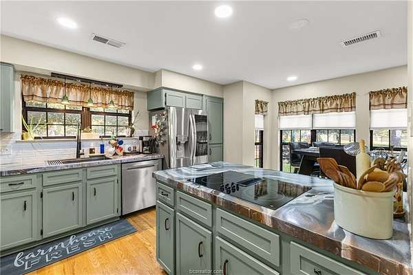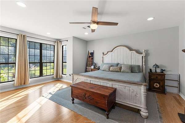 Welcome to this exceptional country estate in Waller County, where lower tax rates and serene surroundings create the perfect retreat. This stunning 3,316 sq. ft. two-story home sits on 9.2 acres of picturesque land, offering multiple, unlimited opportunities for horses, hobbies, or simply enjoying wide-open Texas living. Start your mornings with coffee on the expansive front porch beneath the shade of majestic oak trees. Inside, French doors open from the spacious family room to a sparkling pool, while a cozy wood-burning fireplace adds warmth on cooler nights. The recently painted kitchen cabinets brighten the inviting kitchen, which is bathed in morning sunlight and features ample storage along with a butler's pantry/wet bar. The primary suite on the main floor offers a relaxing retreat with a skylight in the master bath, and upstairs you'll find three additional bedrooms and two full baths. Recent updates include a new roof and air conditioning system, both approximately three to four years old. The property is fully fenced and cross-fenced, featuring a five-stall barn with a concrete floor, a round pen, chicken coop, and expansive pastures ready for your vision. Solar blinds on all windows will convey. Whether you're seeking a peaceful residence, equestrian haven, or country getaway, this Waller County gem offers endless possibilities.