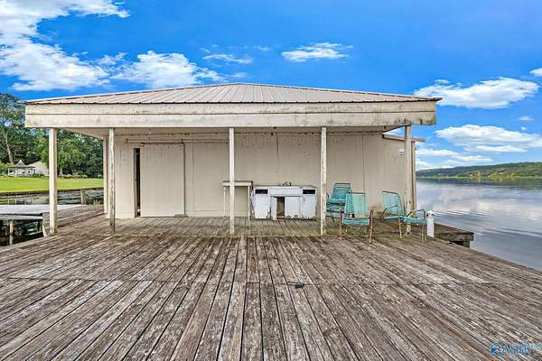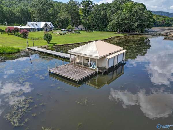 250 feet of open shoreline on the Tennessee River with over 2 level acres and a 2-slip boathouse! This 1,396 sq ft home is perfect as a full-time residence, weekend lake getaway, or rental retreat. Enjoy floor-to-ceiling windows in the kitchen, family, and dining rooms with sweeping water views, plus a 12x24 covered porch for relaxing outdoors. Features 2 bedrooms, 2 full baths, a spacious en-suite, large laundry room with extra storage, and new roof (May 2024). Boathouse is approx. 900 sq ft with updates in 2023 and approx. 10' water depth. Home sleeps 7 and is sold fully furnished. Just minutes to Publix!