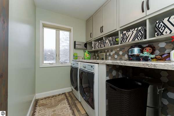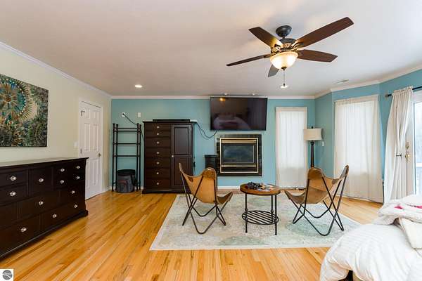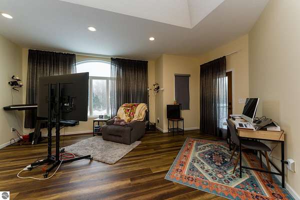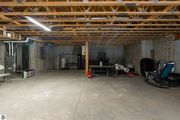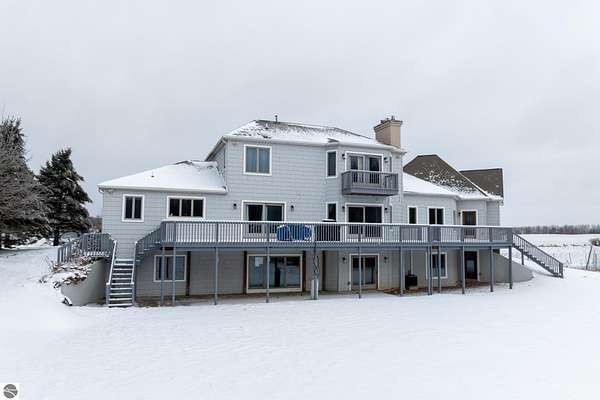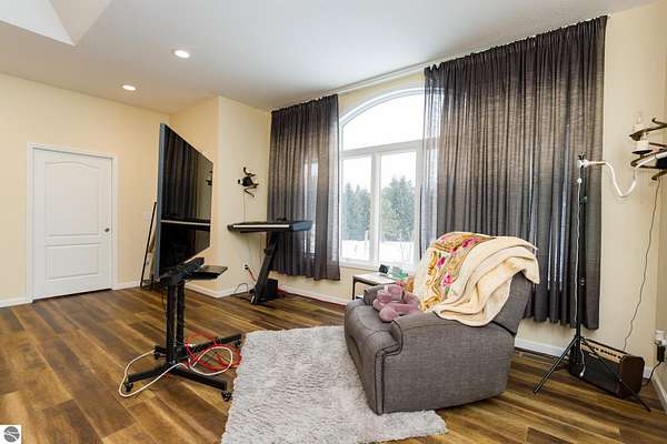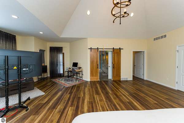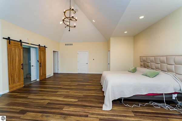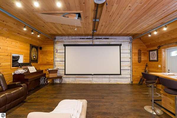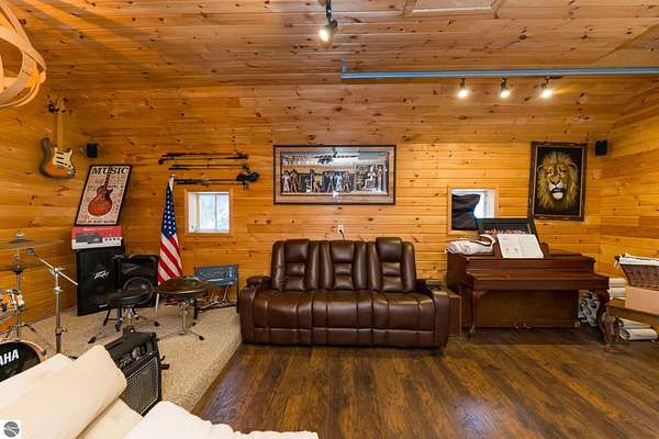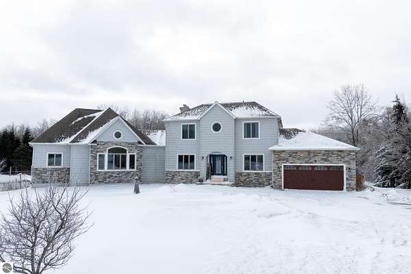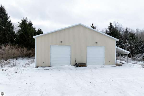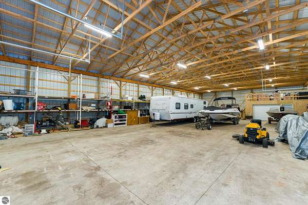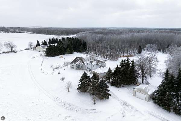 This one-of-a-kind property offers luxury living, recreation, and endless possibilities--all in a private, breathtaking setting on nearly 50 acres. This expansive home offers 6 bedrooms and 4.5 baths, thoughtfully designed for entertaining, and retreat-style comfort. The main-level primary suite is a true sanctuary, featuring a nursery, two large walk-in closets, and a spa-like bath complete with an infrared sauna, dual shower heads with jets, bidet, and custom cabinetry. There is also an office adjacent to the primary bedroom. Laundry room has a dog bath and a laundry pure system that they use in hospitals. A second upper-level primary suite includes its own fireplace and private bath, creating an ideal guest or extended-family space. The lower level features a spacious family room with walk-out access, wet bar, bedroom, full bath, and abundant storage--perfect for entertaining or everyday living. Outdoor amenities truly set this property apart, offering nearly 50 acres of natural beauty with established ATV and snowmobile trails, a scenic bridge in the woods, and a stocked pond with deck, electricity, and water pump. Enjoy evenings around the stone firepit with built-in seating and take advantage of the productive vineyard with grapes and raspberries, all surrounded by serene, private surroundings. A standout feature is the 5,000 sq ft pole barn, complete with concrete floors, multiple oversized doors, RV hookups (30 & 50 amp), enclosed vented workshop with keyless entry, plumbing, loft storage, industrial shelving, and a hoist. The property also includes a private Man Cave (24' x 25') with its own heating and cooling, bar with sink, stage, projector and screen, new windows, insulation, and separate keyless entry. Additional highlights include over 2,000 sq ft of unfinished space ready for customization. Experience exceptional privacy, luxury, and versatility in this remarkable estate!