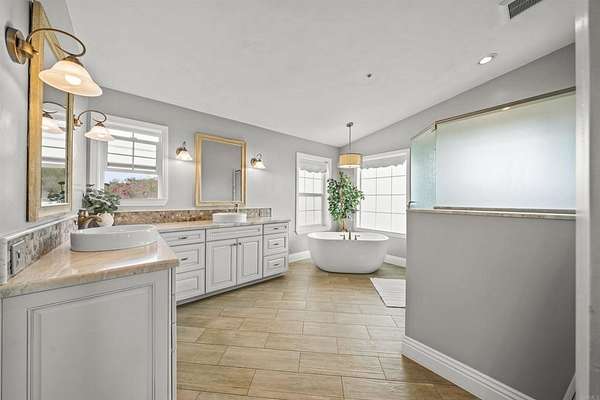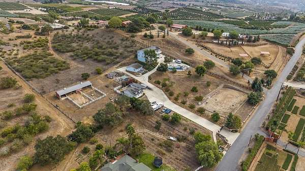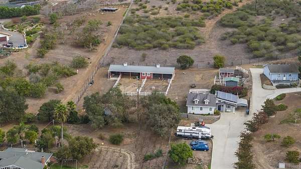 Seller will entertain offers between $2,151,000 - $2,250,000. Incredible versatility and stunning panoramic views await at this equestrian estate, which features THREE RESIDENCES on a highly developed 2.35 acre lot. The 3,465 sq ft main house offers soaring ceilings, beautiful finishes, a whole house fan, central vac, laundry chute, sub-level with more storage, 4 bedrooms AND an attached 1 bed/1bath apartment with a separate entrance. The 1,100 sq ft detached guest house offers 3 beds (1 is an optional bedroom/den), 2 full baths and a private backyard. There is new HVAC equipment for all 3 residences and owned solar energy systems on both the main house and detached guest house. Another detached building houses a 3-car garage and bonus room (currently used as an office) with a half bath. Enjoy a NEW high-end pool with a safety enclosure, large patio, waterslide, grotto, LED lights, and AOP Ozone system for excellent water quality. Rinse off after a swim in the enclosed outdoor bathroom with a shower. A charming red barn offers 2 oversized stalls with runs, a hay room and a tack room. An outdoor riding arena completes this amazing horse property. A large chicken coop with run is set up for collecting fresh eggs each morning. Multiple fruit and avocado trees and large planter boxes complete the home garden. This fully-fenced property with a gated driveway is located on a well-maintained private road in Bonsall, only 30 minutes from the beach in Oceanside. Experience coastal breezes and even a view of the ocean on a clear day from this hilltop property!