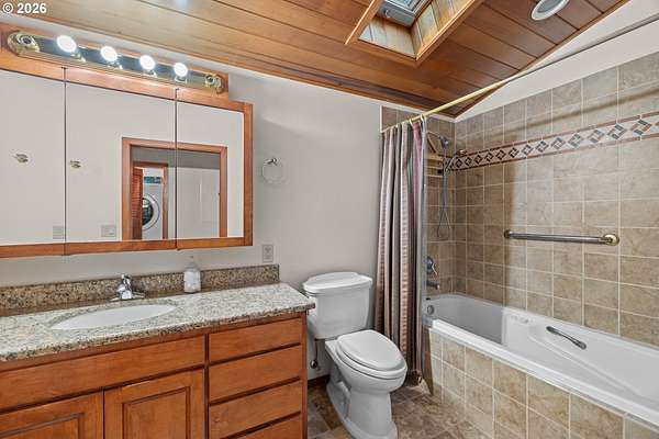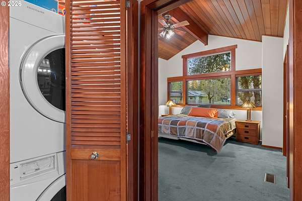 - Ceiling Fan, Central Vacuum, Furnished, High Ceilings, Jetted Tub, Laminate Flooring, Vaulted Ceiling, Washer Dryer