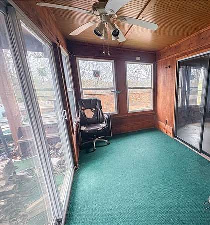 Investor special in Warsaw, MO! This 2-bedroom, 2.5-bath ranch-style home with a walkout basement sits on approximately 2.3 acres and is full of potential. While it could use some TLC, the home offers solid bones. Inside, you'll find spacious rooms throughout, with each bedroom featuring its own bathroom and generous closet space. The oversized living room boasts a cozy wood-burning fireplace and flows seamlessly into the kitchen, creating an open-concept feel perfect for gathering and entertaining. The walkout basement offers even more opportunity, with room to add non-conforming bedrooms, additional living space, or a recreation area. Step outside and enjoy multiple sunrooms and screened-in porches, perfect for relaxing and taking in the peaceful surroundings. Outdoors, the property truly shines with a 22x13 concrete pool surrounded by ample decking, a beautiful lawn, and plenty of garden space. Additional features include a 20x28 detached garage with workshop and parking space, plus an 8x12 storage shed. All of this conveniently located just minutes from town-don't miss your chance to transform this property into something truly special! Property being sold as-is. Cash or conventional loans ONLY.