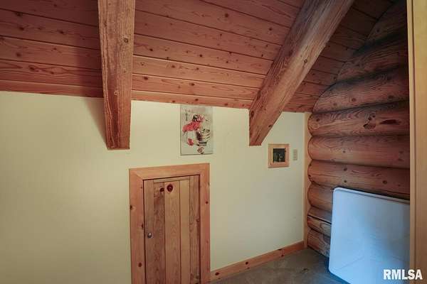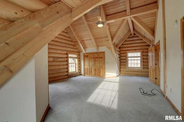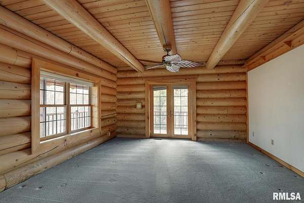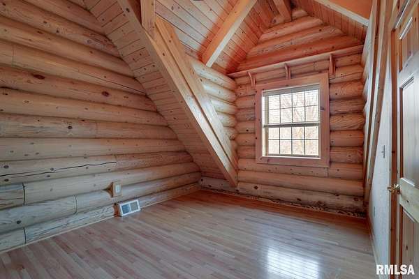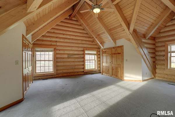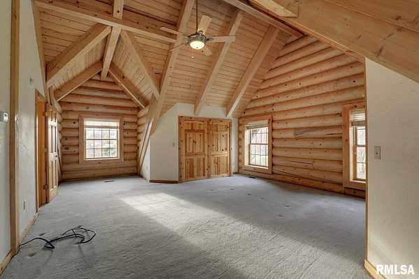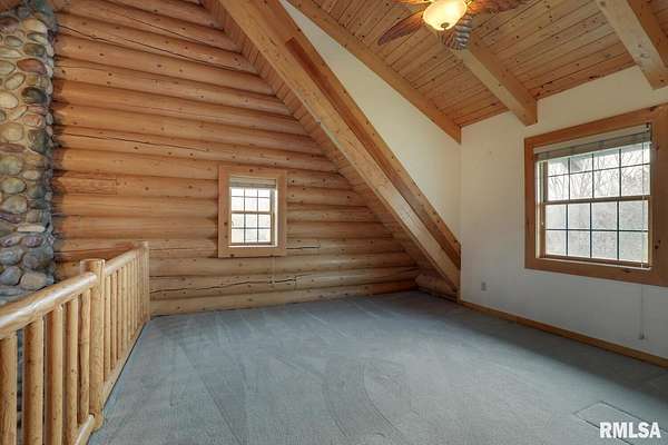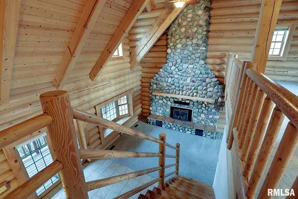 Experience the allure of this exquisite log home, meticulously crafted in 1991 and nestled on a sprawling 11-acre wooded estate. The grand lodge boasts a captivating architectural design, featuring a 2-story living room adorned with a magnificent river stone fireplace and a loft area that overlooks the inviting space. Revel in the abundance of natural light, thanks to the vaulted ceilings that create an open, airy ambiance. The primary suite offers a sanctuary of comfort and style, embodying the essence of luxury living. The custom kitchen boasts stainless steel appliances and stone countertops along with optimal space to create enticing meals and entertain family and friends. A fully finished walk-out basement presents a versatile living space, recreational room, and an additional non-confirming bedroom for added functionality. Immerse yourself in the tranquility of the surroundings, accentuated by landscaped gardens meticulously designed by a master gardener and a custom rock garden adding a unique touch of artistry to the outdoor space. A serene creek meanders through the property and nature enthusiasts will delight in the opportunity for hunting, target shooting, and wildlife observation on this pristine estate. Tuck everything away in the oversized 2-car attached garage, offering both convenience and security. Embrace the ultimate retreat into nature and find solace in the serenity of this exceptional log home.