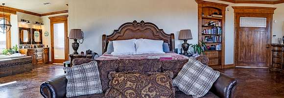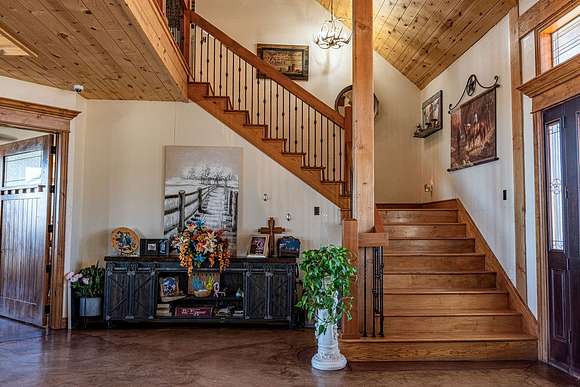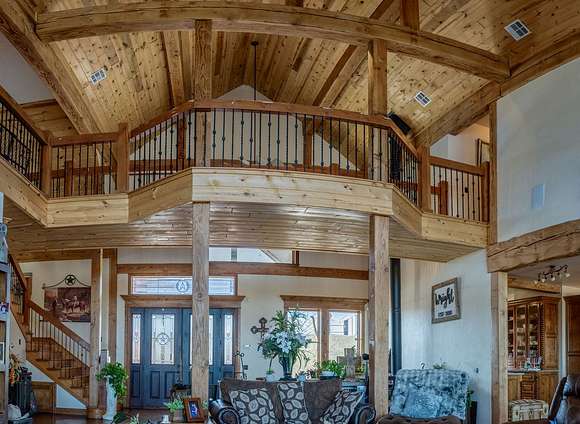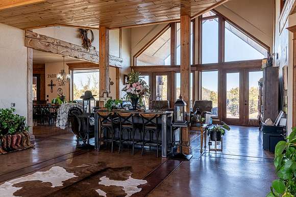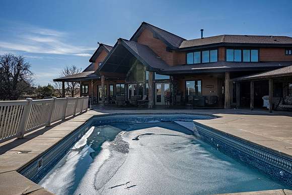 Nestled on a sprawling 550-acre estate, in Hinton Oklahoma is this extraordinary hunting property features a stunning log lodge that seamlessly blends rustic charm with modern luxury. Boasting 8 spacious bedrooms and 7 bathrooms, the lodge provides the perfect balance of comfort and style. The property is a hunter's dream, abundant with whitetail deer, wild turkey, and waterfowl, offering endless opportunities for outdoor adventure. A irrigation pivot keeps the land in prime condition for both wildlife and recreational use.