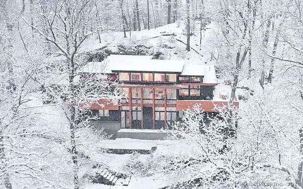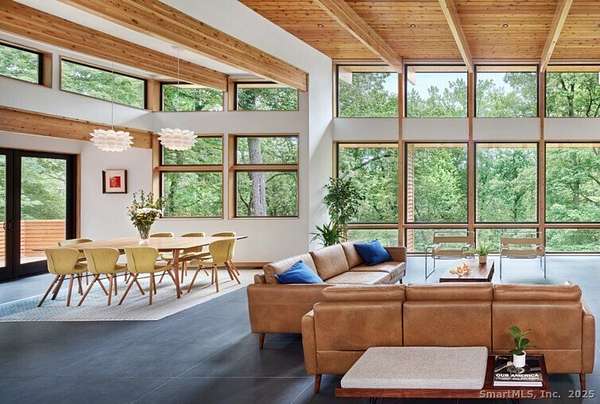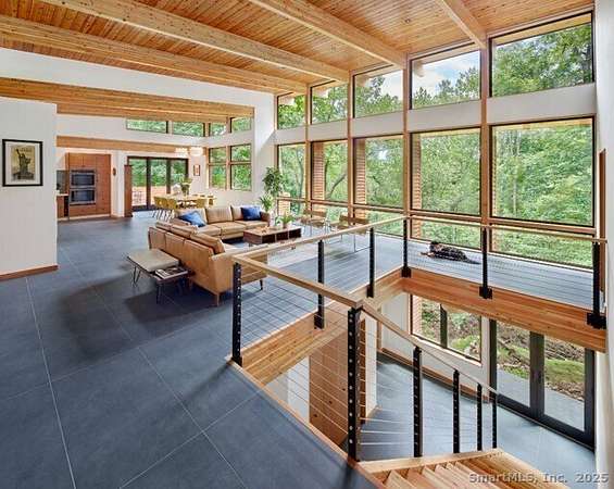 This exquisite Frank Lloyd Wright Usonian-inspired lakefront home offers a unique opportunity for luxurious living on the serene shores of Lake Waramaug, nestled in the charming village of New Preston. Known for its pristine waters, Lake Waramaug is one of Connecticut's most beautiful and well-preserved natural lakes. Presented by Viridian Custom Homes and Lindal Cedar Homes, the house is a masterful design by Aris Georges, a leading authority on Frank Lloyd Wright's design principles who seamlessly blends historical inspiration with contemporary comfort. Finishes by Kathleen Goodwin Interiors reflect a sophisticated blend of Connecticut and New York City design sensibilities. This 4-bedroom, 3.5-bath, 3,285 SF home features airy rooms that optimize both public and private spaces for movement and flow; ceiling heights range from 16' on the main level to 10' on the lower level. Strong horizontal and vertical emphasis creates a harmonious connection to the horizon, enhancing the home's integration with the land. Using organic building materials, broad roof overhangs, and abundant natural light creates a dynamic interplay of light and shadow and aids in passive heating and cooling. Set on 1.85 acres with 500 ft of private waterfront and dock rights, it offers spectacular westerly views. Combining architectural elegance with modern amenities, this home perfectly blends form and function, embodying the timeless appeal of Wright's visionary design.