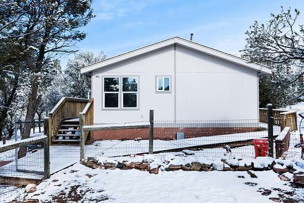 Newly renovated, 3-bed, 2 full bath manufactured home offers 1,672 SF of living space on a 2 acre lot. Featuring new vinyl & carpet flooring, new interior & exterior paint, and light fixtures 2025. New refrigerated air combo unit 2025. New roof 2025. New water heater 2025. The open-concept layout includes a spacious living area and primary suite with a walk-in closet and full bath, set apart from the additional bedrooms for added privacy. A heated sunroom can easily serve as a home gym, indoor garden, office, or relaxing retreat. Step onto the new wraparound deck and experience serene, private living, tucked among the trees for a true mountain escape. Storage shed. There's plenty of space to add a casita or workshop. Enjoy quiet country living just 20 minutes from the city. A must See!