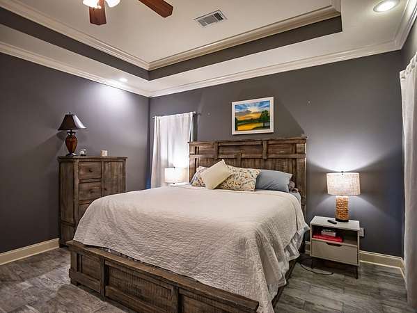 - Blinds, Ceiling Fan(s), Fireplace-Gas, Granite Countertops, Jetted Tub, Walk-In Closet(s)