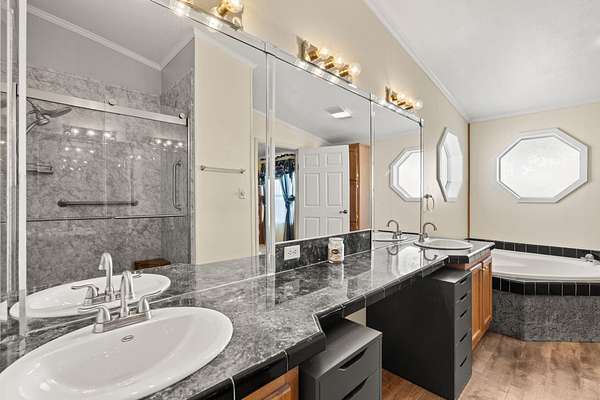 - Ceiling Fans, Garden Tub Roman Tub, Home Office, Kitchen Island, Main Level Primary, Multiple Living Areas, Pantry