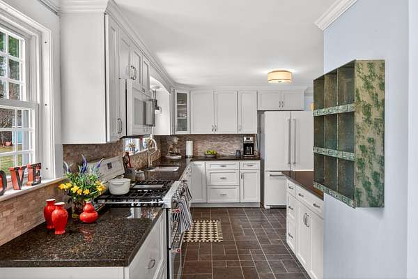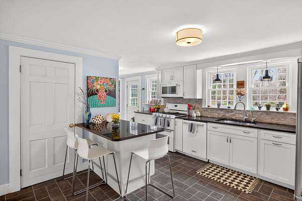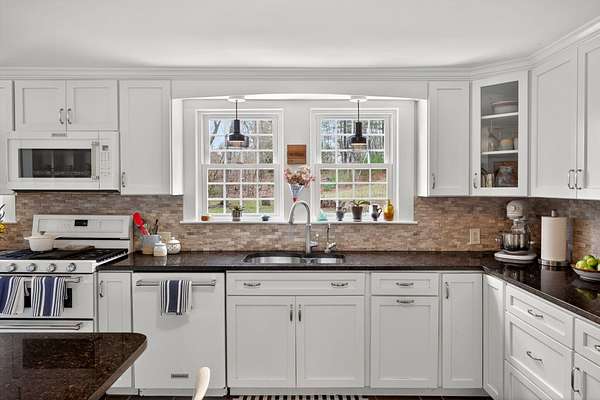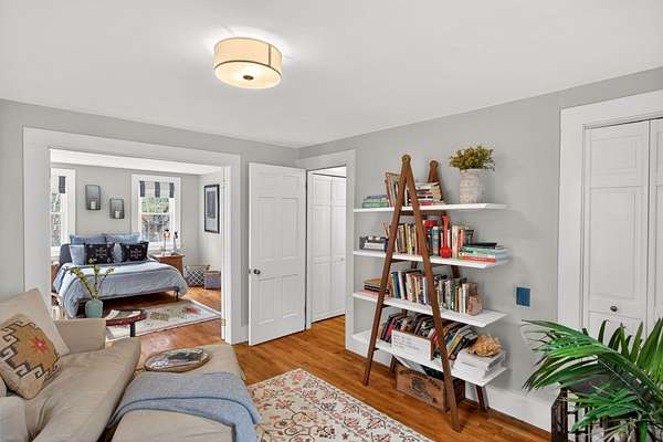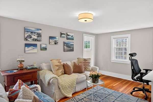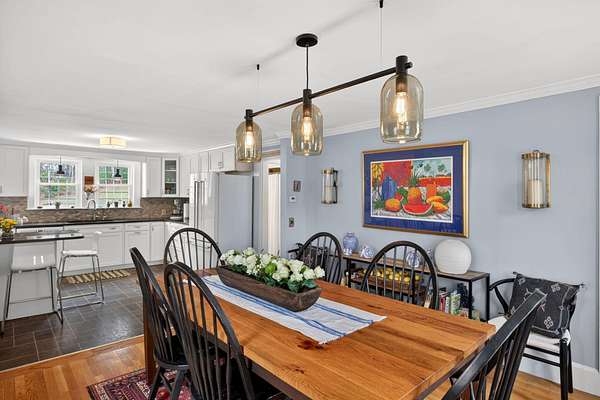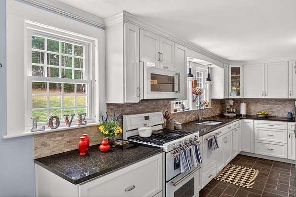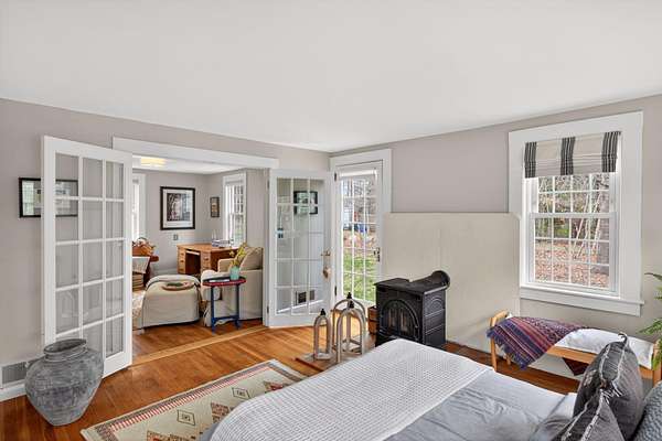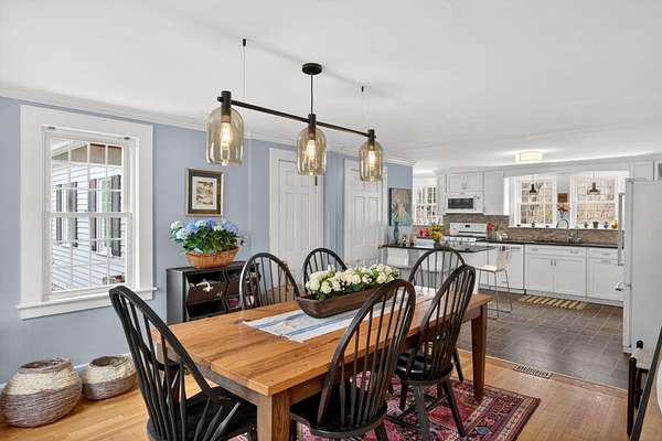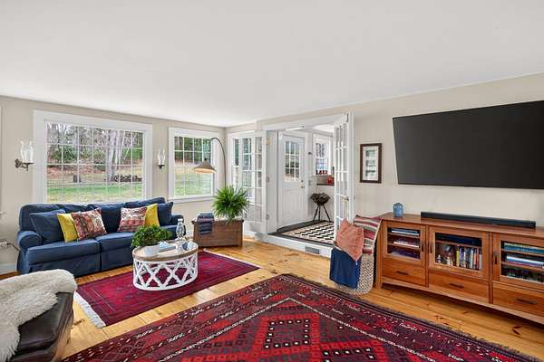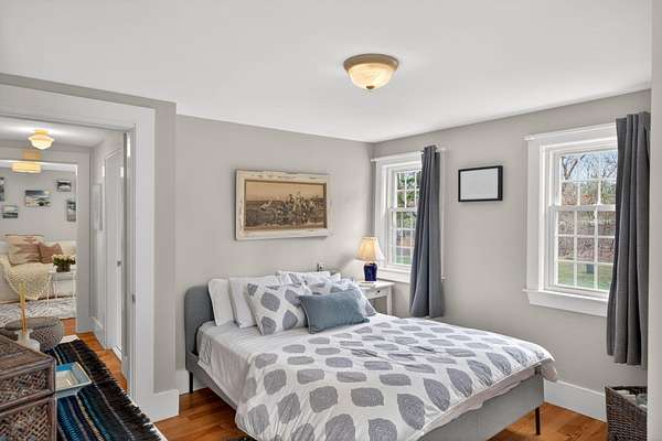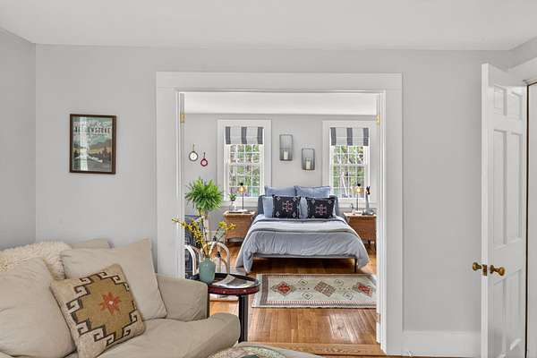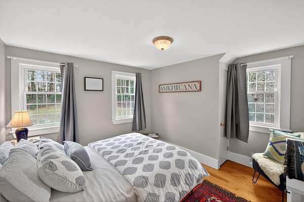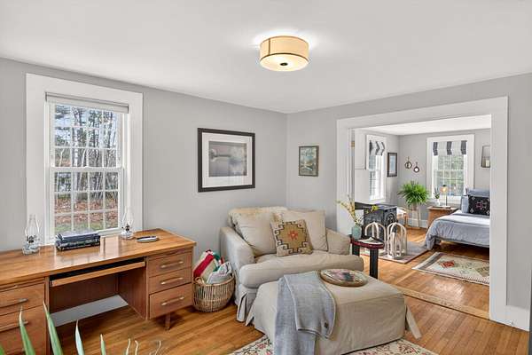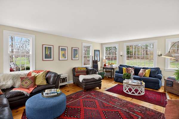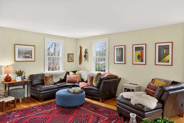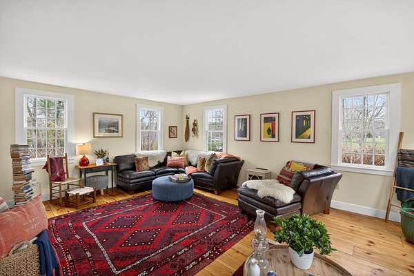 Some homes are built. Others are shaped by generations of care. Set on a lush, bucolic lot in one of Plymouth County's most desirable and rapidly appreciating towns, Breezy Knoll is a classic New England farmhouse offering four bedrooms, two full baths, hardwood floors throughout, and a rambling floor plan with both generous gathering spaces and quiet, intimate corners. The sun-drenched main living space is oversized, window-wrapped, and made for gathering. The kitchen features a propane range, granite counters, a center island, and a peaceful backyard view from the sink. A gracious dining room -- the kind that was made for holidays -- and a first-floor bedroom with private sitting area complete the level with welcome separation from the entertaining spaces. Upstairs, the primary bedroom is a true sanctuary -- walk-in closet, expanded sitting area, and abundant natural light. Two additional bedrooms and a full bath round out the upper floor. Outside, the expansive lawn, mature seasonal plantings, and shed offer immediate beauty -- with real potential for a barn, expanded gardens, or a working farmstead.