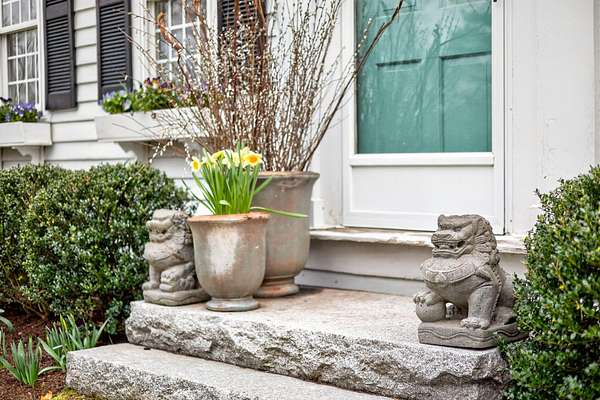 From Upland, turn right onto Crescent. New England farmhouse (white color) on right