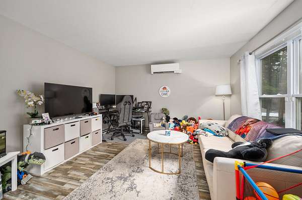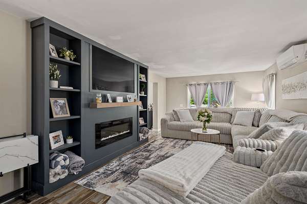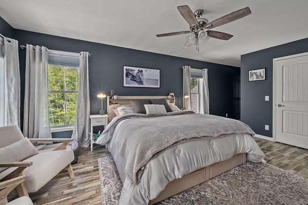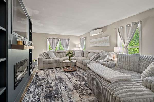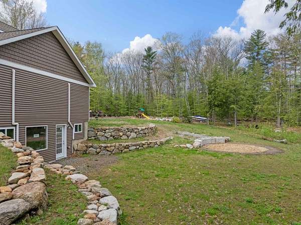Welcome to 32 David Lewis Road, a 4-bedroom home on 2.4 acres of privacy with amazing convenience in the scenic town of Gilford, NH. Built in 2021, this modern residence offers tranquility bordered by a year-round brook. Step inside to discover a spacious formal dining room perfect for entertaining. The open-concept living area flows seamlessly, highlighted by large windows that fill the home with natural light. A new cozy fireplace with built-in bookcases in the living room adds warmth and charm. The well-appointed kitchen features contemporary finishes and ample counter space with a breakfast bar for culinary enthusiasts, granite and quartz counters throughout. Adjacent to the kitchen, a private deck invites you to relax while enjoying peaceful views. The primary bedroom suite is a quiet retreat with a large walk-in closet. The lower level offers a walk-out design with windows and is already plumbed for an additional bathroom, providing excellent expansion potential. A charming stone wall accents the property, and the partially finished landscaping on this level lot is ready for your personal touch—low-maintenance exterior. Gilford residents enjoy access to a 1,700' sandy beach on Lake Winnipesaukee, a town boat launch, and docks. Close to Gunstock Ski Area and other Lakes Region attractions.