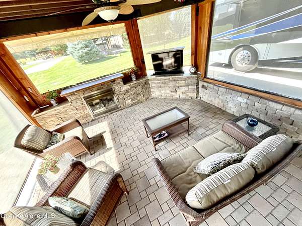 Turnkey ''Class A Only''motorcoach property with many custom upgrades! Spacious coach house with kitchenette. Gas range with cooktop, counter w/sink, cabinets, full sized stainless steel refrigerator, washer/dryer hook-ups, instant hot water heater. Walls are tongue & groove knotty pine and the bathroom has a tiled walk in shower. Covered patio is ~13 x 18' and has three overhead gas heaters, a carved mantle and 12' hand milled wooden bar with coordinating bar stools, two TVs. There is underground propane, upgraded power, Sun Setter shades, awning, and propane fireplace. Outdoor kitchen includes granite counters, wine refrig., stainless steel sink, disposal and built in BBQ. Two new trees planted in rear.