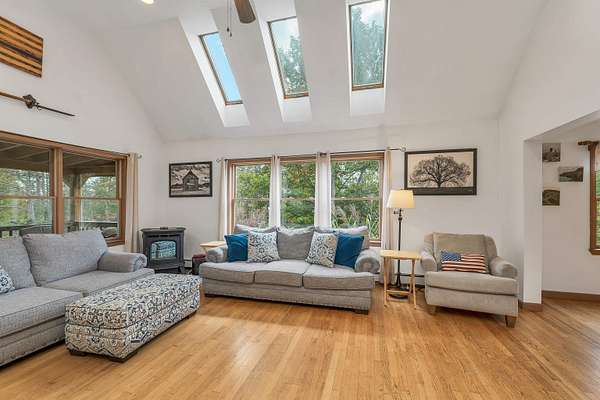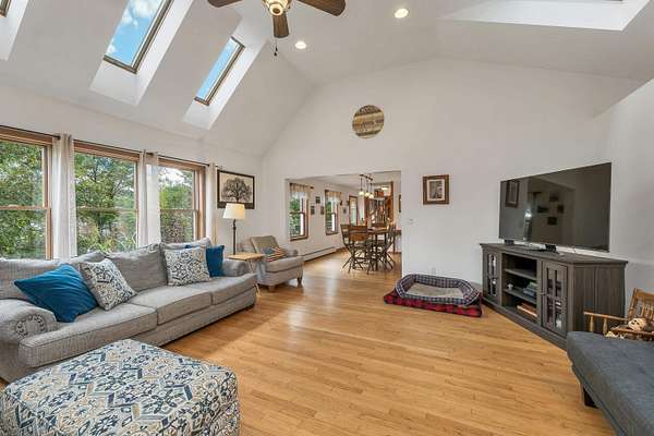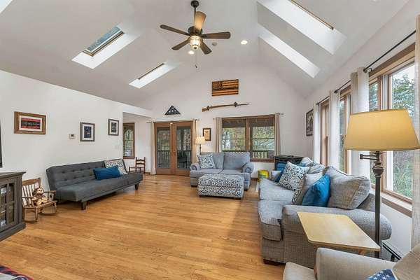 This stately Cape offers lake views, privacy, and deeded beach access to Lake Winnisquam, just a short walk away. End your day enjoying the sunset from the deck or unwinding in the brand-new screened-in porch. With over 3,000 square feet of living space, the home includes a thoughtfully designed in-law apartment featuring its own private entrance; ideal for potential rental income or extended living space for family and guests. The main house is filled with natural light and features generously sized rooms with tall ceilings. The 1st floor offers a fully applianced eat-in kitchen, a bonus prep pantry with extra cabinetry, a spacious dining area, an oversized family room with cathedral ceilings and a cozy pellet stove, a home office/den, a full bathroom, and a 1st floor bedroom. Upstairs, you'll find a primary suite with lake views, a second full bathroom, and a third bedroom. Step outside and you'll discover a true outdoor oasis. Spend summer days lounging by the gorgeous in-ground pool, complete with a pool house for convenient storage. After a swim or day at the lake, rinse off in the new outdoor shower; a perfect touch for lakeside living. The firepit is also ideal for crisp fall evenings. The spacious decks, screened-in porch, and expansive yard offer ideal spaces for entertaining or simply enjoying the tranquility of the surroundings. All this in a peaceful country setting, just minutes from town, schools, shopping, and area activities. This is the best of both worlds!