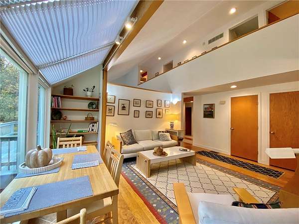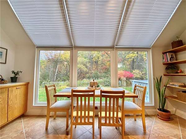 A SECLUDED SPACIOUS & MODERN CONTEMPORARY ONE OF A KIND "ACORN" HOME IS NESTLED AMONG MATURE WOODS ON 5 ACRES, IN A BEAUTIFUL CONVENIENT TO EVERYTHING NEIGHBORHOOD COMMUNITY! THIS RESIDENCE IS BATHED IN NATURAL LIGHT, FROM AN ABUNDANCE OF WINDOWS & SOARING CEILINGS. CLEAN ARCHITECTURAL LINES & AN OPEN FLOOR PLAN CREATE A FEELING OF EFFORTLESS FLOW BETWEEN SPACES & NATURE ITSELF! THE SURROUNDING TREES PROVIDE PRIVACY & TRANQUILITY FOR A PERFECT PEACEFUL PRIVATE RETREAT WITH A MODERN EDGE! WHETHER YOU PREFER TO RELAX OR ENTERTAIN INSIDE OR OUT THIS 3200 sq. ft. HOME WITH A LARGE DECK & SCREENED IN PORCH ACCOMMODATES BOTH. ALL OF THIS PLUS 2 "RUMFORD" MASONRY FIREPLACES (known for their efficiency), 1st FLOOR LAUNDRY, NEW ROOF & SKYLIGHT 2024 w/WARRANTY, NEWER - FURNACE, HOT WATER HEATER & TREX DECKING. SCHEDULE YOUR APPT TO TOUR AS THIS IS A MUST SEE! MINUTES FROM LECOM, ARNOT HOSPITAL, DOWNTOWN ELMIRA, ELMIRA HEIGHTS, HORSEHEADS, BIG FLATS & CORNING! 704 sq ft of the finished sq ftg is on the lower level.