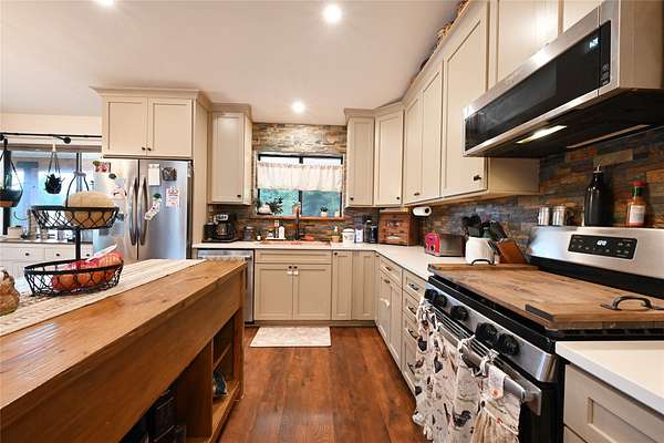 - Dishwasher, Disposal, Freezer, Microwave, Propane Water Heater, Range, Refrigerator