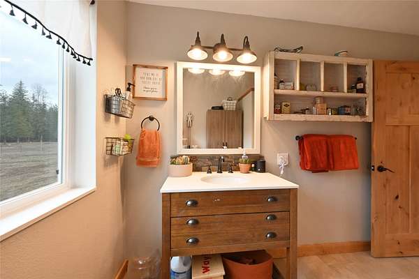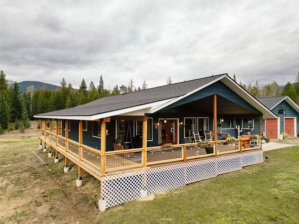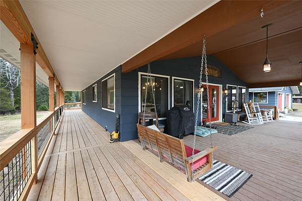 Welcome to your dream retreat in Trout Creek, where rural tranquility meets modern comfort on a peaceful, private 20-acre estate with no covenants! This remarkable ranch home boasts 2,672 sq ft designed for both relaxation and memorable gatherings. With 4 spacious bedrooms and 2 primary suites, everyone can enjoy their own private sanctuary, while the open-concept kitchen and living room are perfect for entertaining friends and family. Enjoy your nearby pond and breathtaking mountain, meadow, and wooded views from your expansive wraparound covered deck! Ready for homesteading ambitions is the enclosed garden, chicken coop, 24'x35' barn, attached 18'x24' lean-to, and generous 30'x40' pole barn/shop for all your projects and equipment. Experience the best of Northwest Montana lifestyle: privacy, natural beauty, close to town, year-round outdoor recreation, and the nearby boat ramp-just five minutes away. Don't miss the opportunity to make this extraordinary property your forever home! Home has been updated throughout, new roof 2024 and has been extended to cover wrap around deck, new deck railings and more. Excellent well. There is an irrigation ditch/creek serving this property and the area. Several frost free hose bibs are conveniently located for home, garden and barn areas.