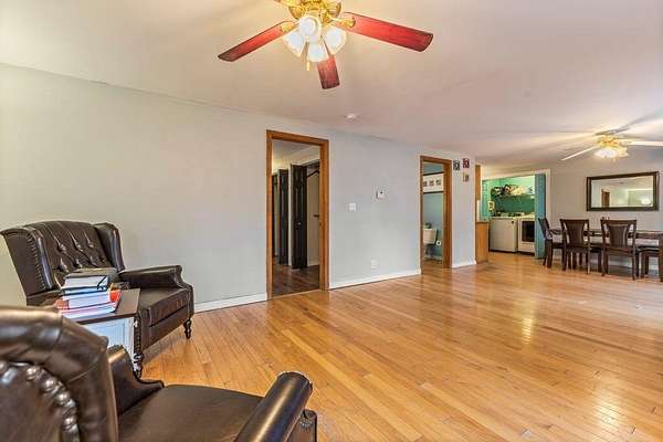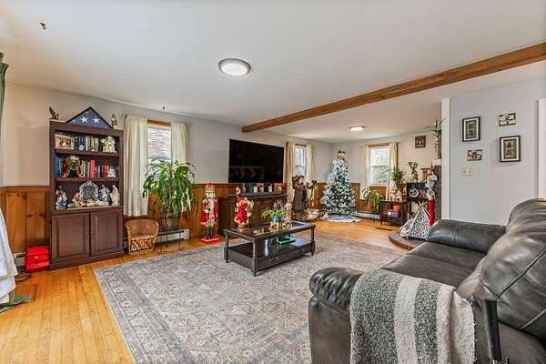 WOW! Single-family expanded Cape offers the rare advantage of a fully separate in-law apartment, perfect for multi-generational living or rental income. Set on 2 peaceful rural acres, the main home features 3 bedrooms and 2 bathrooms, including a first-floor primary suite, hardwood floors, a ramped entry, a large open kitchen with dining area, and two inviting living rooms, with two additional bedrooms upstairs. The property includes a detached two-car garage with an extra bay, plus a second completely separate building with its own driveway, its own two-car garage, and a private 1-bedroom, 1-bath in-law apartment with in-unit laundry and its own heating system. This is a rare blend of space, privacy, and flexibility in a quiet country setting. For more info or to schedule a showing call The Mateja Group 207.553.2605 & visit JeffSellsMaine.com