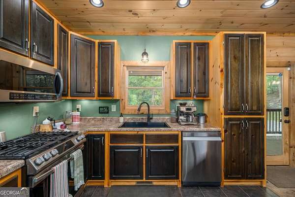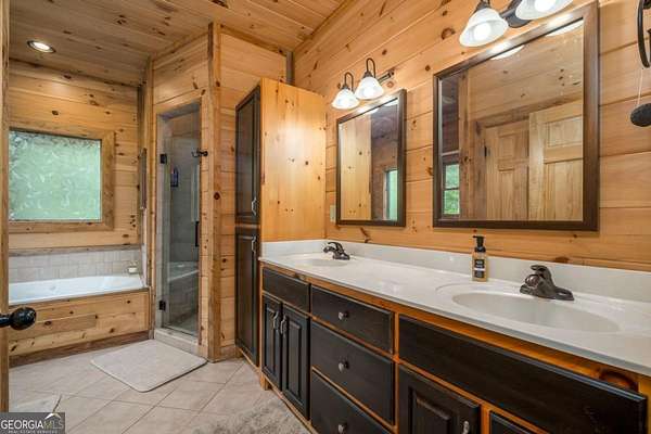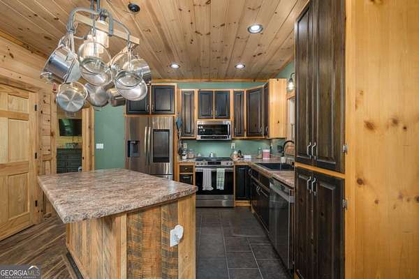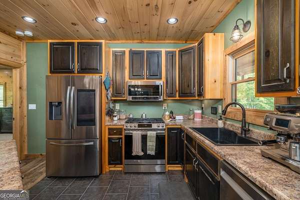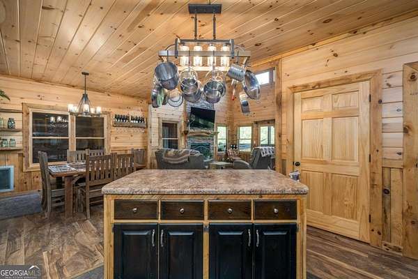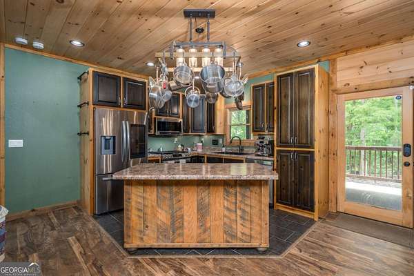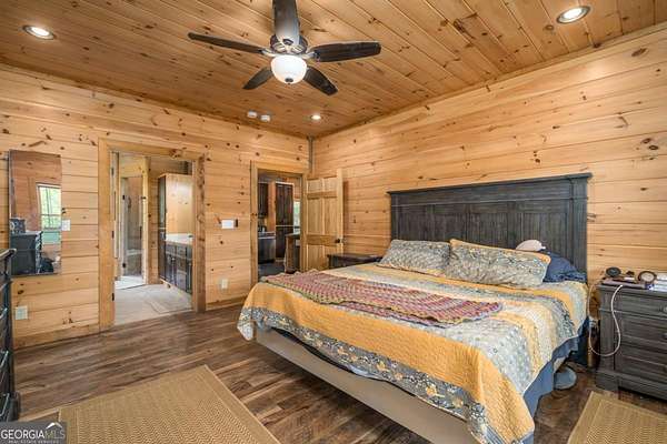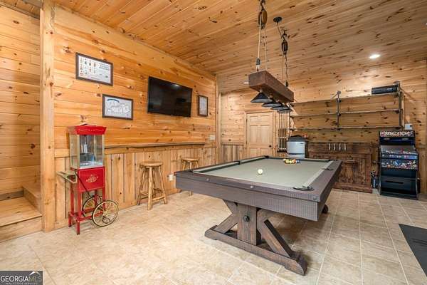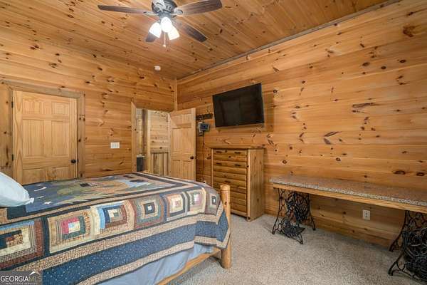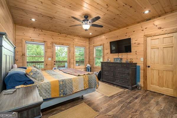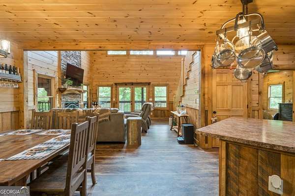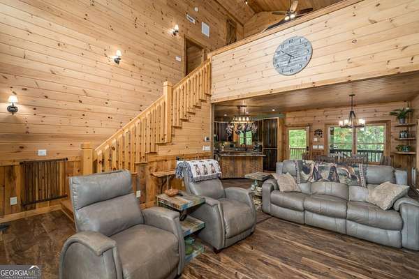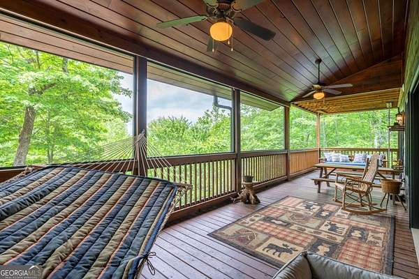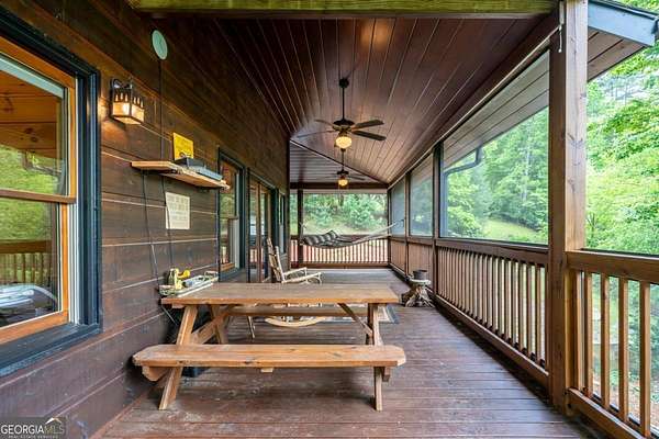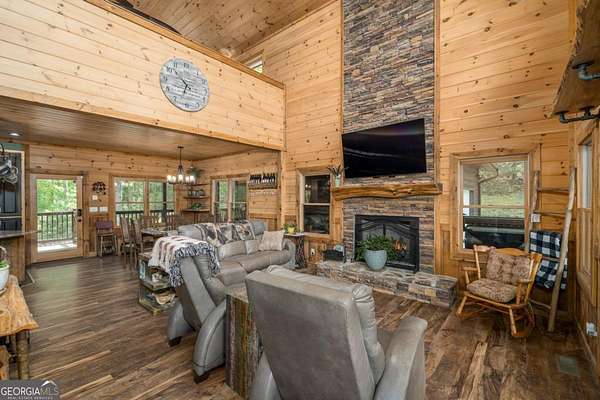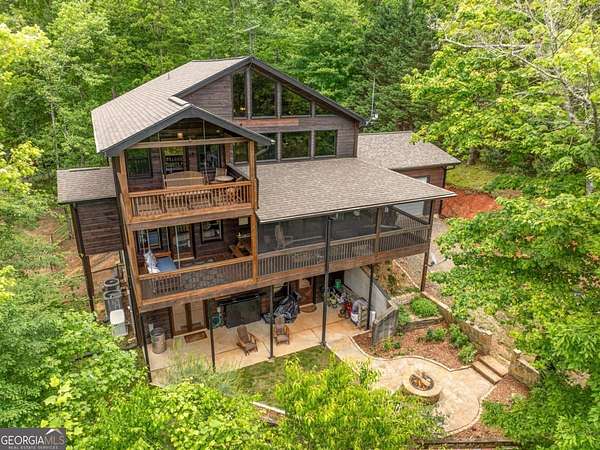 Welcome to your dream escape in the coveted Aska Adventure Area-perfectly positioned near National Forest, Toccoa River, Lake Blue Ridge & miles of hiking & biking trails. This spacious 3 BR/3BA + Loft mountain home is thoughtfully designed with a Bed & Bath on each level, offering the ideal layout for full-time living, multi-generational use, or as a vacation rental. The open-concept main level welcomes you with a seamless flow from the dining area into a well-appointed kitchen featuring abundant cabinetry, an angled island & upgraded stainless steel appliances. Soaring ceilings, walls of windows & striking floor-to-ceiling stacked stone gas fireplace anchor the inviting great room that has French doors opening to an expansive screened porch with outstanding winter mountain views & just imagine the year round views with a bit of tree trimming! The main-level oversized master is a true retreat, complete w/porch access, dual vanities, jetted tub, walk-in tiled shower & a convenient laundry closet tucked inside the ensuite. Upstairs, a spacious loft overlooks a dramatic wall of windows w/awesome mountain scenery, making it the perfect space for an office or relaxation spot. A 2nd large master suite offers a full ensuite bath + private access to a covered porch w/breathtaking mountain views perfect to enjoy your morning drink. The terrace level is made for entertaining w/soaring ceilings, game room w/pool table & bar setup & walk-out access to a covered patio & custom firepit. A 3rd large bedroom, full bath & even more storage make this level ideal for guests or family. Set on a generous 1.77AC lot, the property also has a fenced yard & gated porches for your pets + an insulated, oversized 1-car garage w/mini-split perfect for a workshop or outdoor gear storage. Tons of recent updates including newer roof, AC units, tankless water heater & more. With a versatile layout, scenic setting & upscale rustic charm, this house is your ultimate mountain home, getaway, or STR.
