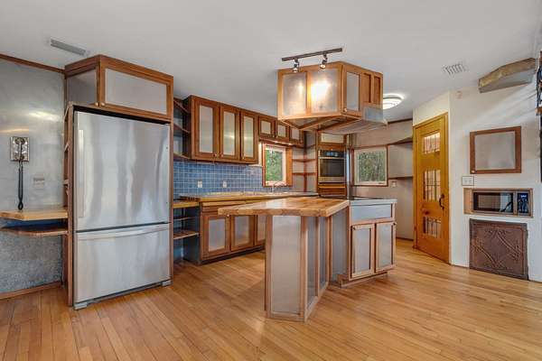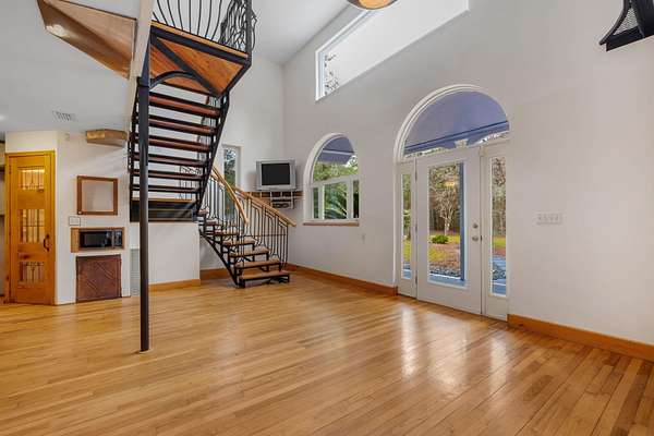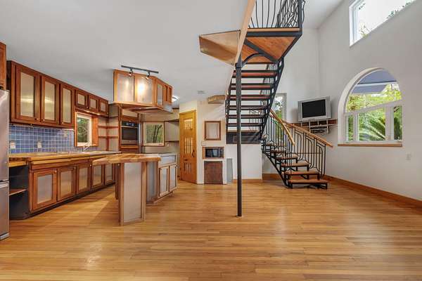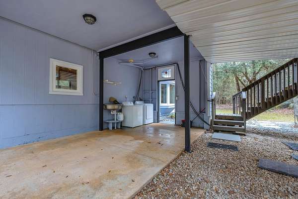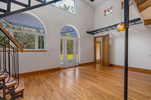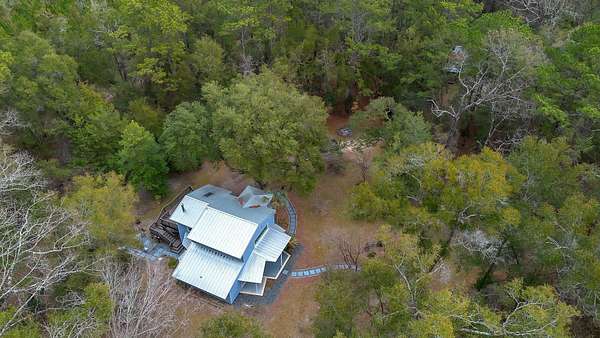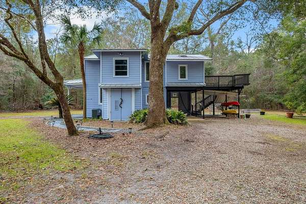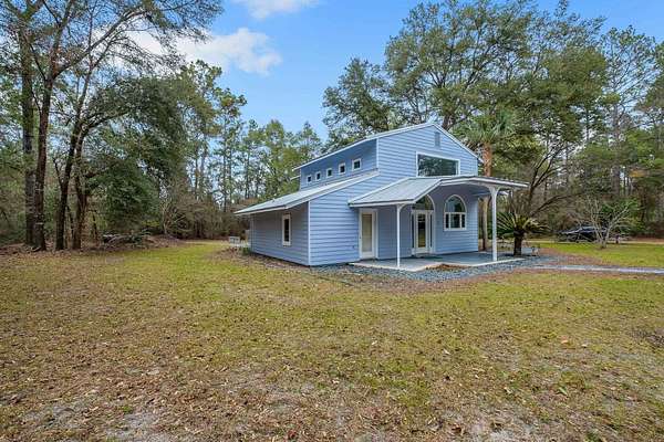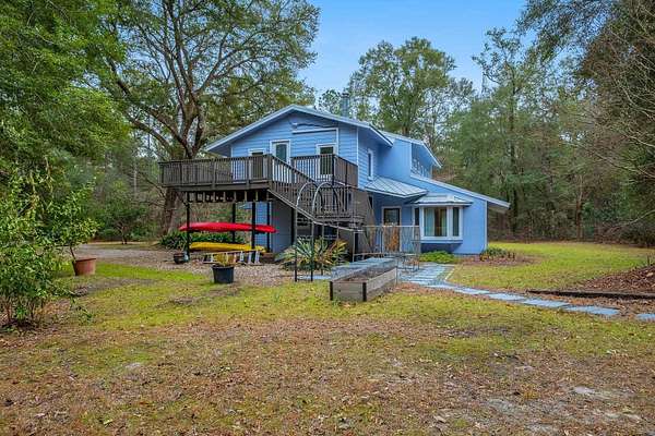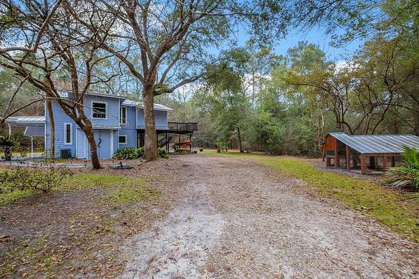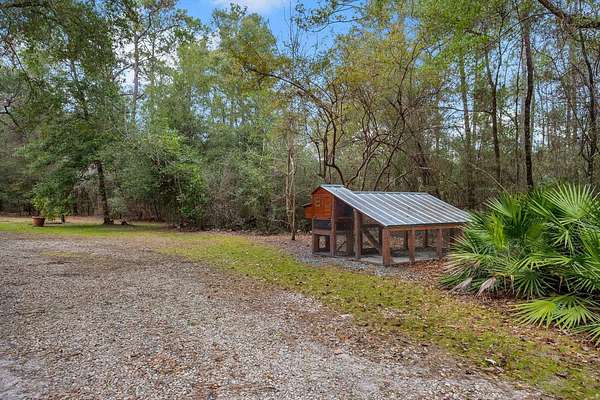 Tucked away on 6.4 private acres on the desirable north end of Wakulla County, this one-of-a-kind property offers a rare blend of privacy, creativity, and functionality. Set on a private road, the setting is serene and secluded, surrounded by beautiful fruit trees and natural landscape that create a peaceful retreat just a short drive from Tallahassee. This 2-bedroom, 2-bath home with a bright loft space was creatively built by artists and is filled with character and craftsmanship. Inside, you'll find handmade countertops and cabinetry, unique finishes throughout, and warm, inviting living spaces that reflect both artistry and comfort. The upstairs space includes a cozy wood-burning stove-perfect for cool evenings and adding to the home's distinctive charm. Beyond the main home, an additional studio space offers endless possibilities. Ideal for an artist's studio, workshop, or car enthusiast, the studio includes a deep well pit designed for convenient vehicle maintenance such as oil changes. A hand-pump well provides an added layer of self-sufficiency alongside the primary well system, ensuring water access even during power outages and a well-designed chicken coop on property is the perfect addition to make this your homestead! Whether you're seeking a private homestead, creative retreat, or versatile live-work property, this unique Wakulla County acreage delivers space, functionality, and inspiration in a truly special setting.