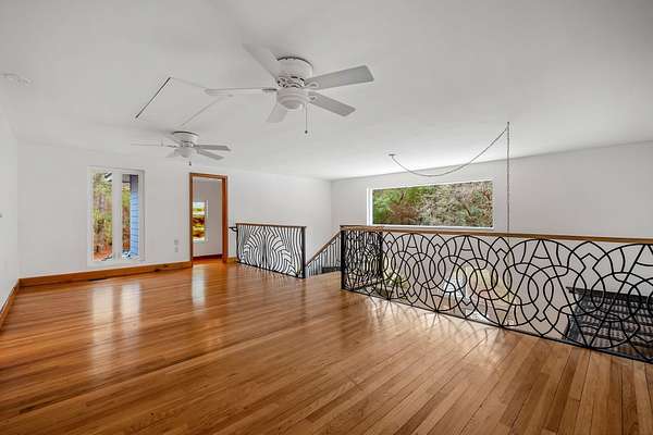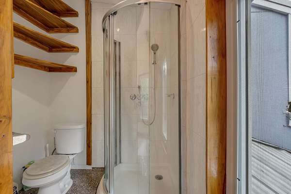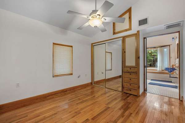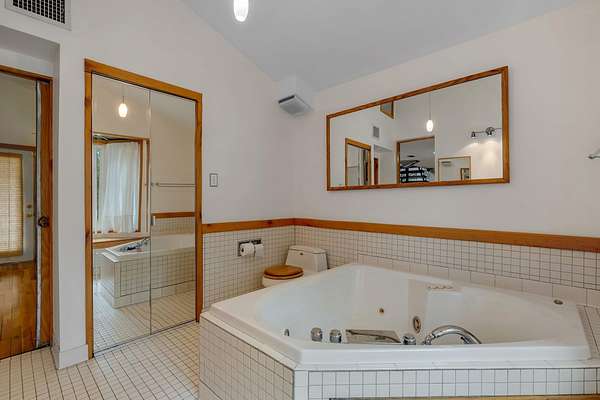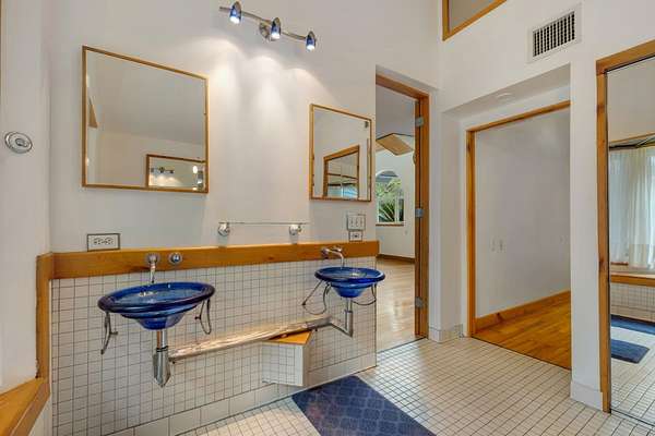 - High Ceilings, Primary Downstairs, Stall Shower, Upper Level Primary, Walk In Closets