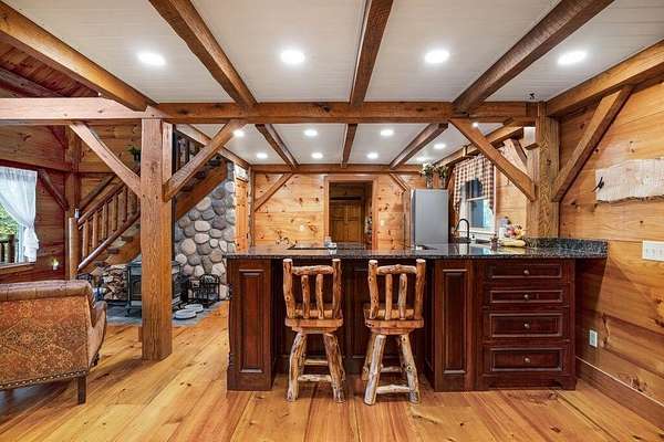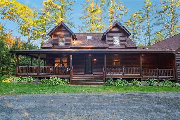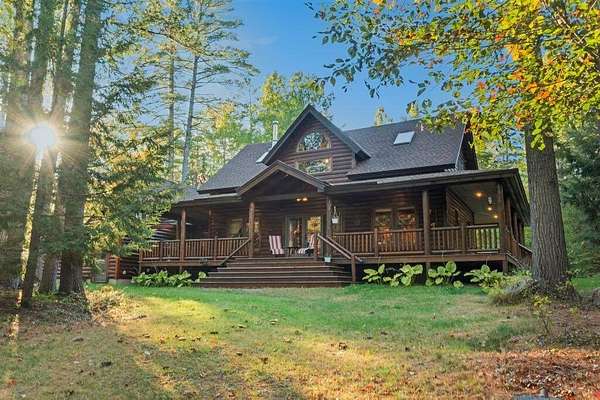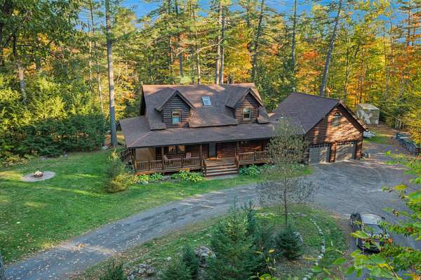 Nestled along the peaceful banks of Main Stream, 32 Lake Como Drive in Harmony offers a private sanctuary like no other. This beautifully crafted 3 bedroom, 2.5 bath home was built using wood harvested from the very lot it sits on, a true testament to timeless craftsmanship. From the moment you step inside you're welcomed by exposed beams, rich woodwork and stunning natural light. Every detail from the wide plank floors to the hand-hewn timbers, speaks to craftsmanship and timeless design. French doors open to the wraparound porch, where the sights and sounds of your 500ft private Main Stream waterfront surround you- the perfect setting for savoring morning coffee, reading a book to the rhythm of rushing water, roasting marshmallows on the stone firepit, or entertaining in a space that blends indoors and outdoors seamlessly. Spend summer days fishing, swimming, kayaking, or exploring trails on your four wheeler. In winter enjoy snowmobiling, ice fishing, snowshoeing, all from your own backyard. A spacious two bay garage, plus a third bay designed for your snowmobile, ATV or motorcycle, ensures plenty of room for all your gear. The beauty of this property is that it offers not just a home, but a year round Maine lifestyle. Adding to its appeal, you'll enjoy deeded access to Great Moose Lake with a private HOA beach and boat launch, along with access to Lake Como.