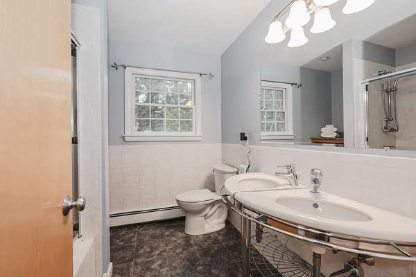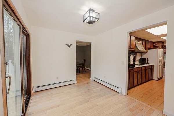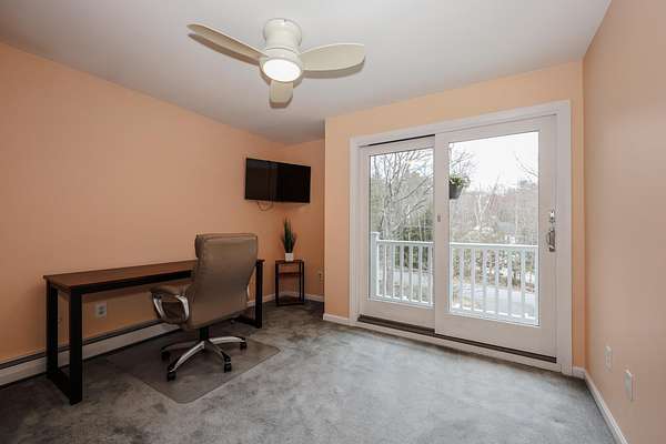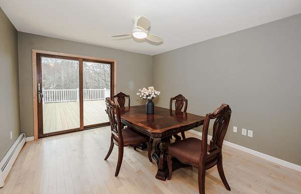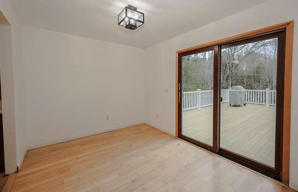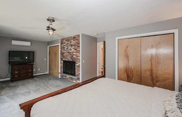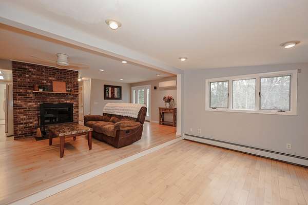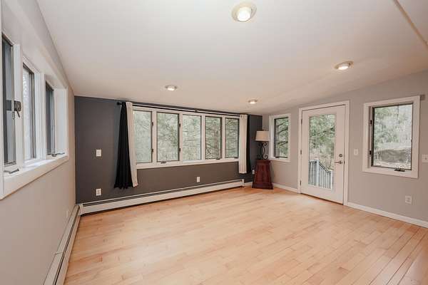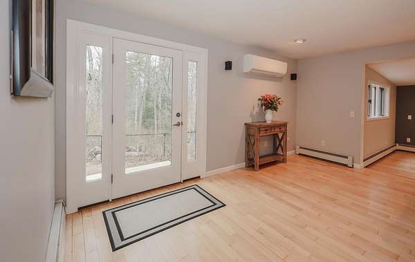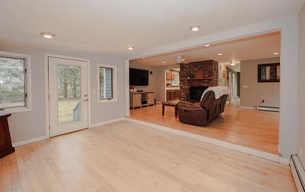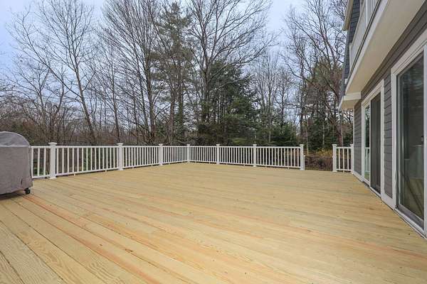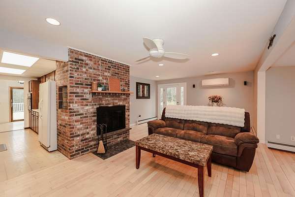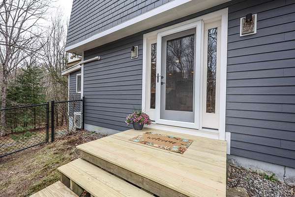 This fabulous three-bedroom contemporary home offers a unique blend of style, comfort, and natural beauty. Featuring stunning and freshly refinished maple floors, the open-concept great room is filled with natural light thanks to an abundance of windows and features a beautiful brick fireplace, creating a bright and inviting space that overlooks a large, wooded, fenced-in backyard—giving the home a serene, treehouse-like feel. The great room comes complete with a 70" TV, surround sound including four speakers on the wall, receiver and subwoofer - just perfect for movie nights and entertaining. The spacious primary bedroom is a true retreat, complete with its own fireplace and a private deck that has just been refinished. The two additional bedrooms are equally charming, each offering its own balcony. All bedrooms are thoughtfully designed with custom-built shelves and organizers for maximum functionality. Additional highlights include a two-car garage, natural landscaping accented by beautiful stone steps, and a galley kitchen and dining area that open directly onto an expansive 24x24 deck, also just refinished and so perfect for outdoor entertaining! The home also features new Hardie board siding and brand-new garage doors. This is a fantastic property and an incredible opportunity for new buyers to enjoy a one-of-a-kind living experience. Easy access to Route 101 by Exit 2 or 3. 20 Minutes to Manchester Airport and 10 minutes to Hooksett. PINKERTON ACADEMY SCHOOL DISTRICT Public Open House Sat 4/25 12:00-2:00 pm.
