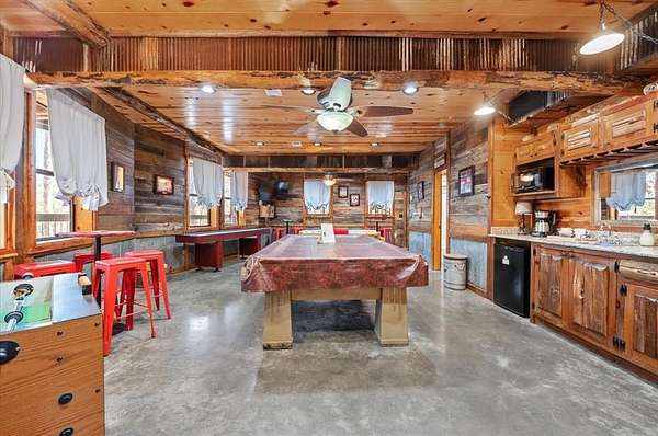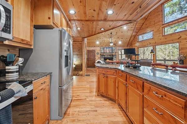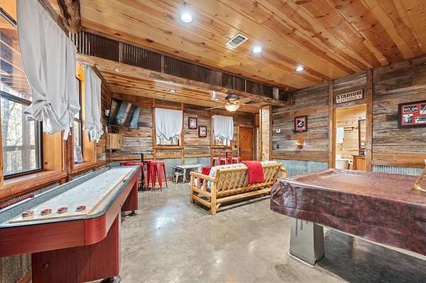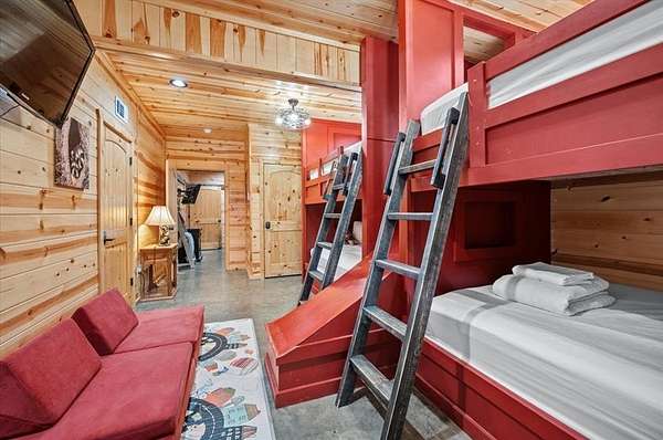 Seller is EAGER to make a deal! Bear's Eye View, a stunning 5-BD 5-BA cabin located off the scenic 259A loop-just minutes from Beavers Bend State Park, Broken Bow Lake, and the Mountain Fork River. This fully furnished retreat is loaded with upgrades and ready for its next owner to enjoy. Major updates in 2025 include 3 HVAC systems, tankless water heater, hot tub, microwave, couch, and re-felted pool table. Within the past 2 years, the property has seen even more improvements: a custom bunk room, dishwasher, asphalt driveway, 2-car garage, outdoor firepit, washer/dryer, mattresses, and a dining table (negotiable). The refrigerator, additional living room furniture, and deck stain were all new in 2022, no details overlooked! Inside, a wall of windows with solar screens stretches from the 2nd to 3rd floor, filling the open living space with natural light and serene forest views. Relax by the wood-burning FP or stargaze through the telescope from the comfort of the living room. The kitchen features stainless steel appliances, an island with seating for five, and convenient access to the laundry area. The main King suite offers a therapeutic bed, private deck access, and a spa-like ensuite with a jetted tub and walk-in shower. Upstairs, the loft area includes a gaming table, queen hide-a-bed, seating with treetop views, and two additional King bedrooms with a shared bath. Downstairs, the game room is designed for fun-pool, shuffleboard, foosball, a TV lounge, and a wet bar with mini-fridge and microwave. Also on this level is a King bedroom and the impressive custom-built bunk room featuring Queen-over-Queen bunks with a built-in slide! Outside, enjoy multi-level decks, a hot tub, outdoor bar seating, grill, custom swing benches, a kids' playset, and cornhole boards-everything you need for unforgettable gatherings. Eager seller says bring an offer! Contact the listing agent for the full upgrade list and video tour.