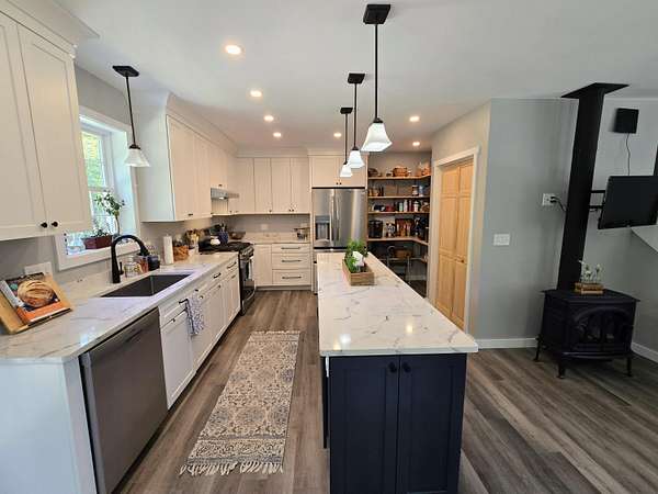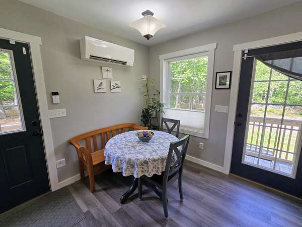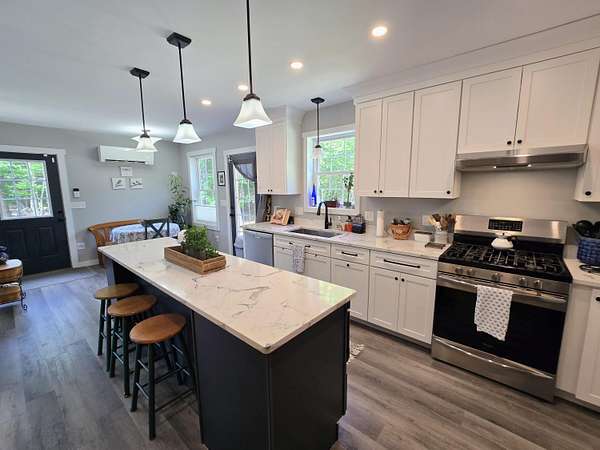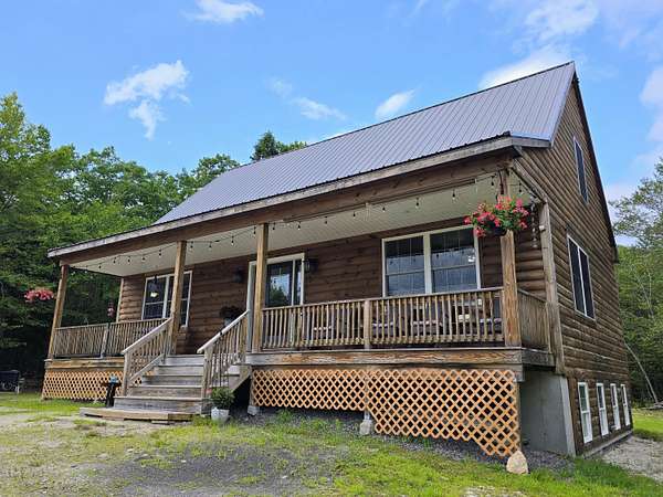 Crafted with exceptional attention to detail, this inviting three-bedroom, 2.5-bath log-sided Cape is privately nestled on almost 4 acres, offering the perfect blend of comfort, functionality, and natural beauty. Relax on the charming farmer's porch or gather around the backyard fire pit; ideal spaces for soaking in the peaceful surroundings. Inside, the cozy living room features a propane heat stove, creating a warm and welcoming atmosphere. The spacious kitchen features quartz countertops, a large center island, and plenty of room for cooking and gathering. The first-floor primary bedroom includes a walk-in closet and an en-suite bath with a double vanity for added convenience. The full daylight basement offers excellent potential for future finished space, whether you're envisioning a game room, home gym, or guest suite. Modern conveniences include ducted heat pumps for central cooling, top-down/bottom-up shades on first-floor windows, and an upstairs office nook, perfect for remote work or quiet study. A spacious three-car garage provides ample parking and includes generous overhead storage. This thoughtfully designed home is truly a unique offering in a tranquil setting. Only a 10 minute walk to a beach that is part of the Sebago to Sea trails. Don't miss the opportunity to make it yours! For more information: Kamal Perkins 207-595-3145