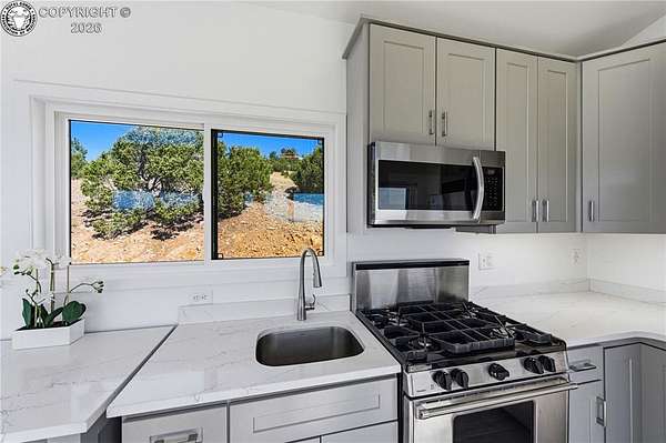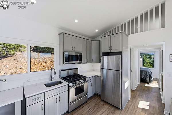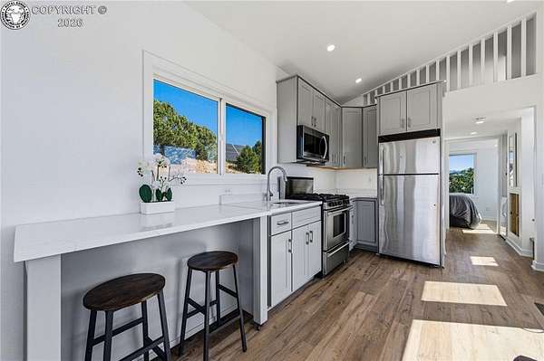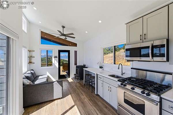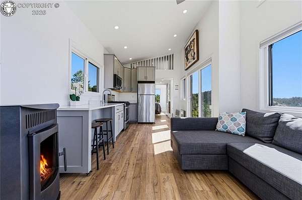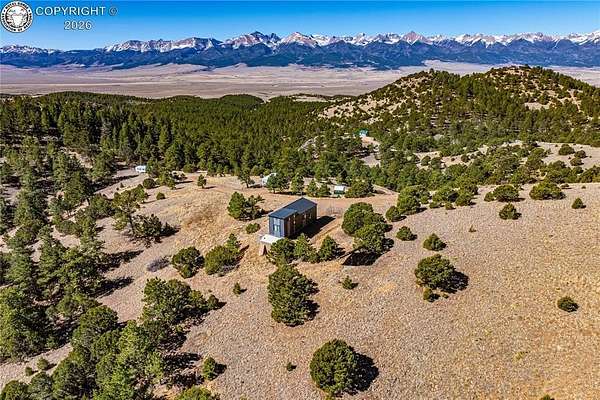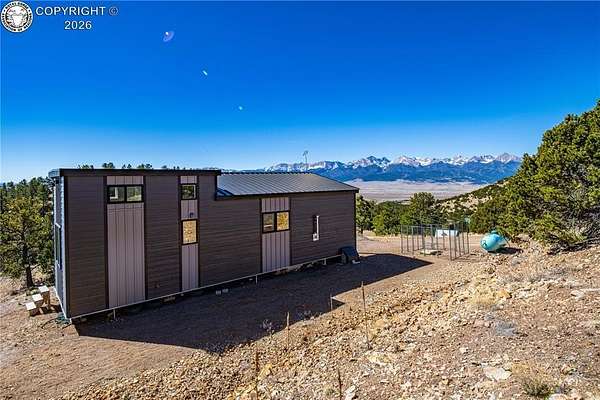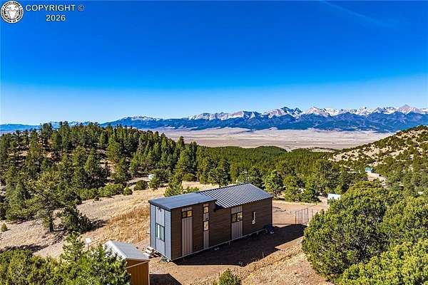 Perched on 10.3 acres in the Rosita Hills, this newly built 2-bedroom, 1-bath home offers a clean, modern design with Ear to Ear VIEWS of the AMAZING Sangre De Cristo Mountain Range from the Spanish Peaks to the Collegiates. Built in 2025, the 650 sq ft Tiny Home is thoughtfully designed with an open living area, laminate flooring, and abundant natural light. A wood-burning stove adds warmth and character, complemented by forced air heat for year-round comfort. The kitchen features modern finishes with a range, oven, microwave, and refrigerator included, while the main-level bedroom and bath provide easy accessibility. Upstairs, a spacious second bedroom offers flexibility for guests or additional living space. All the Furniture on site is included, so just bring your suitcase and start enjoying this dream right away. Step outside onto the covered front porch or deck to take in the sweeping Sangre De Cristo views and quiet surroundings. The land itself is a standout-10.3 acres of usable terrain with a mix of trees, rolling slopes, and open space, ideal for outdoor living. The property is served by a well and septic system and is set up for off-grid living with solar and propane utilities. Located just outside the historic town of Westcliffe, you'll enjoy a unique blend of small-town charm, local shops, art galleries, and community events, all set against the backdrop of the Sangre de Cristo Mountains. The area is part of a designated Dark Sky Community, offering incredible stargazing with clear, star-filled skies that are hard to find elsewhere. Whether you're looking for a full-time residence, weekend retreat, or basecamp for exploring the surrounding mountains and public lands, this property offers space, views, and the freedom of Colorado mountain living.